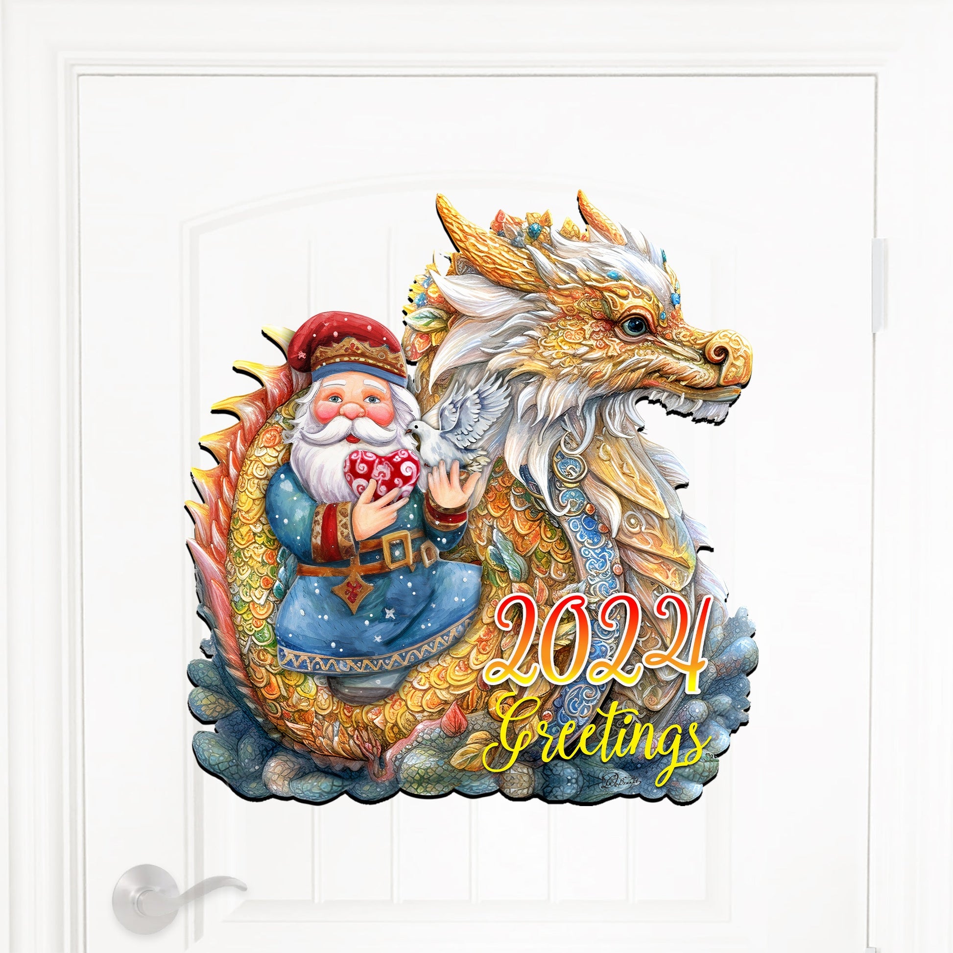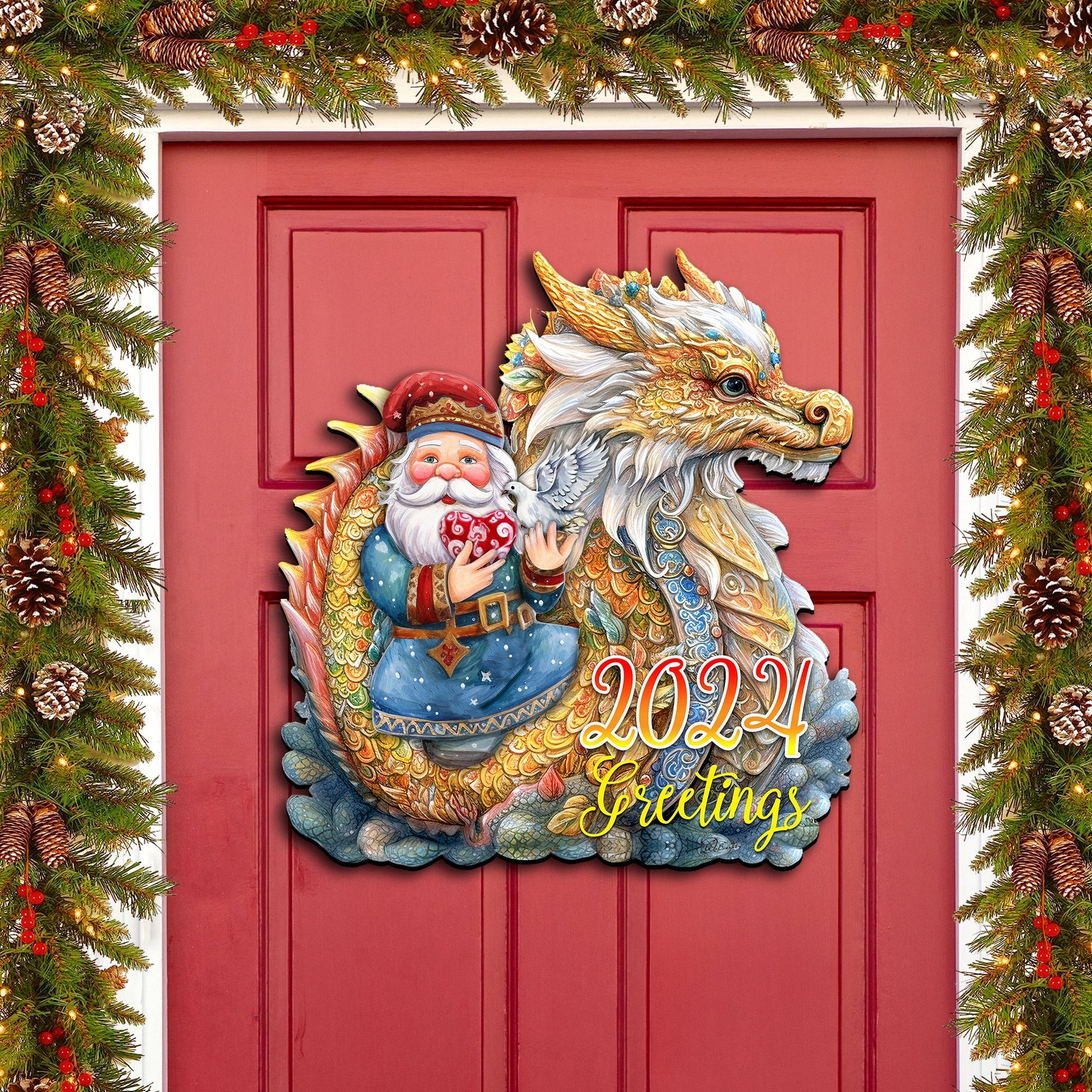 2024 Dated Santa with Dragon Holiday Door Decor by G. Debrekht - Christmas Santa Snowman Decor - 8611088H