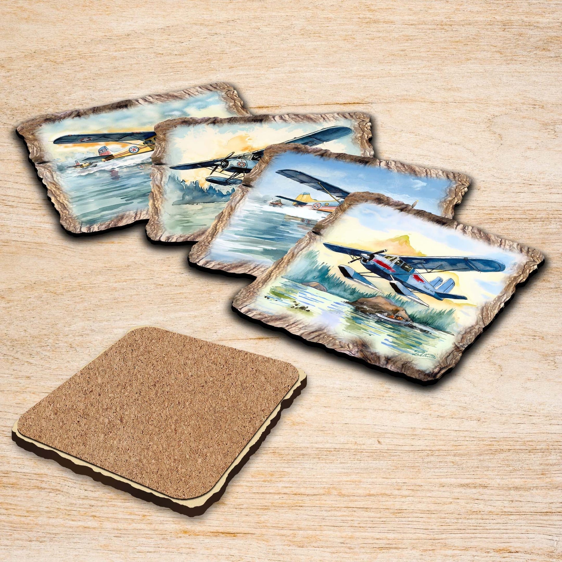 Airplanes Wooden Cork Coasters Gift Set of 4 by Nature Wonders Nature Wildlife Decor - 95403C-S4