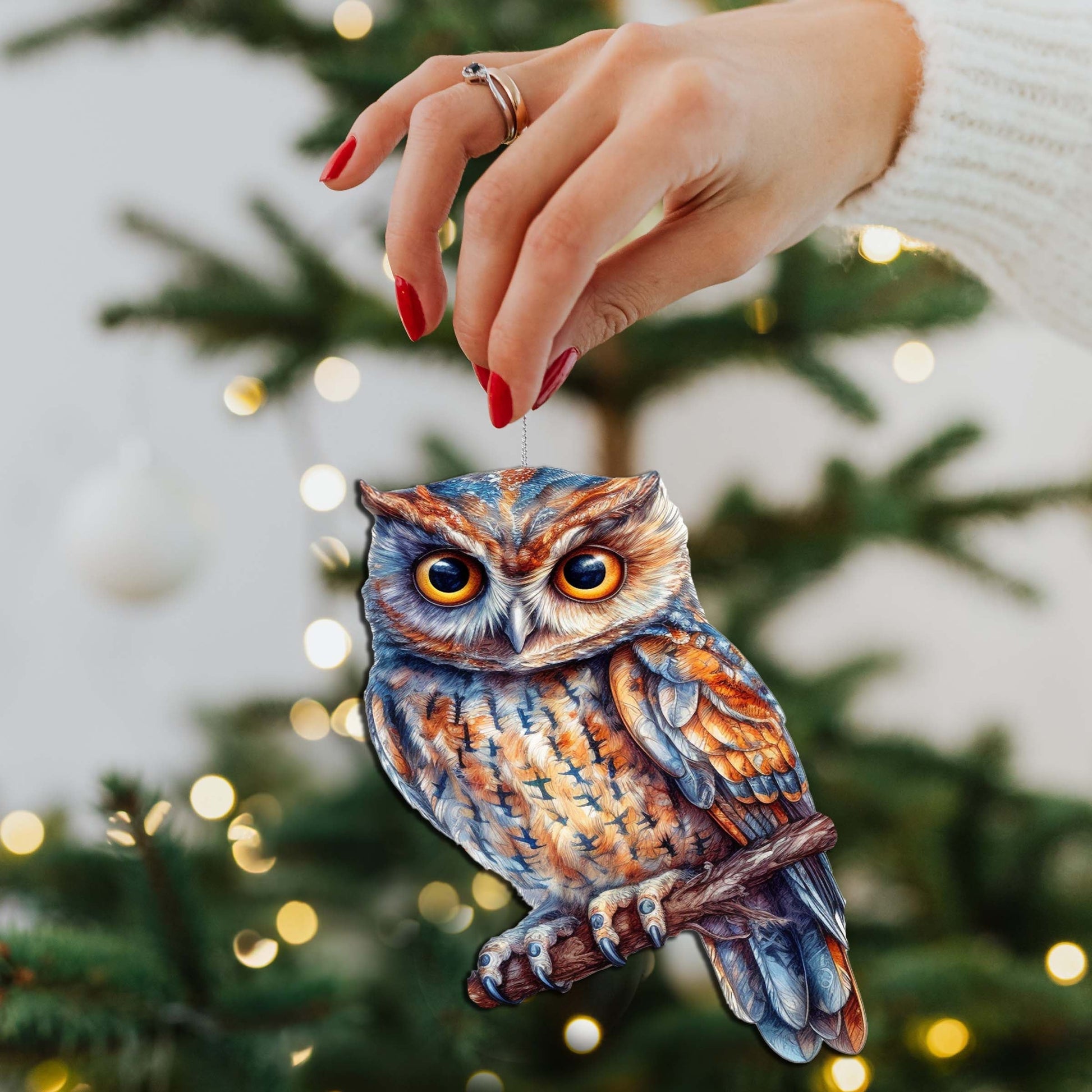 Alaskan Great Horned Owl Wooden Ornaments by G.Debrekht - Wildlife Holiday Decor - 8710004-2