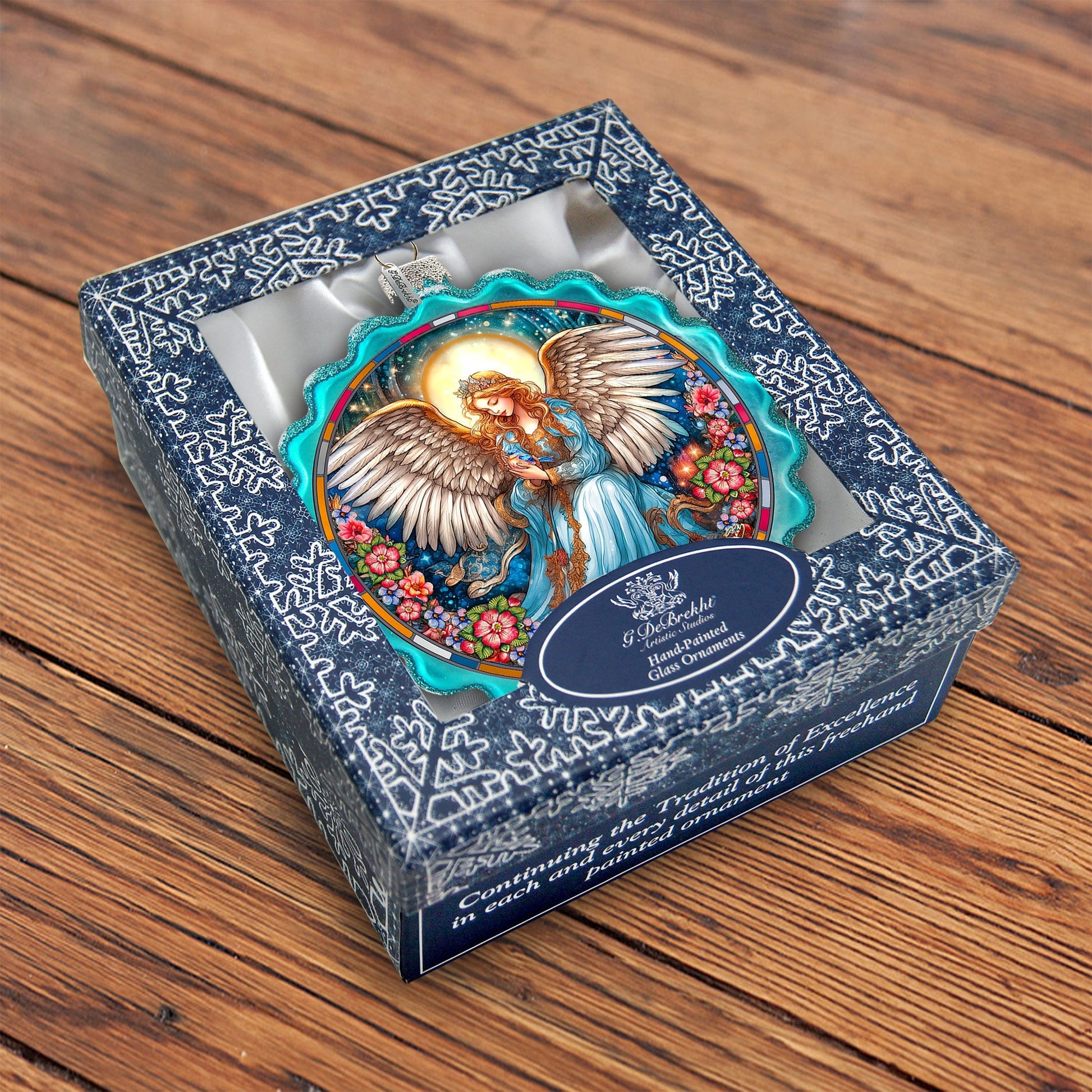 Angel of Healing Wreath Glass Ornament by G. Debrekht - Nativity Holiday Decor - 759-064