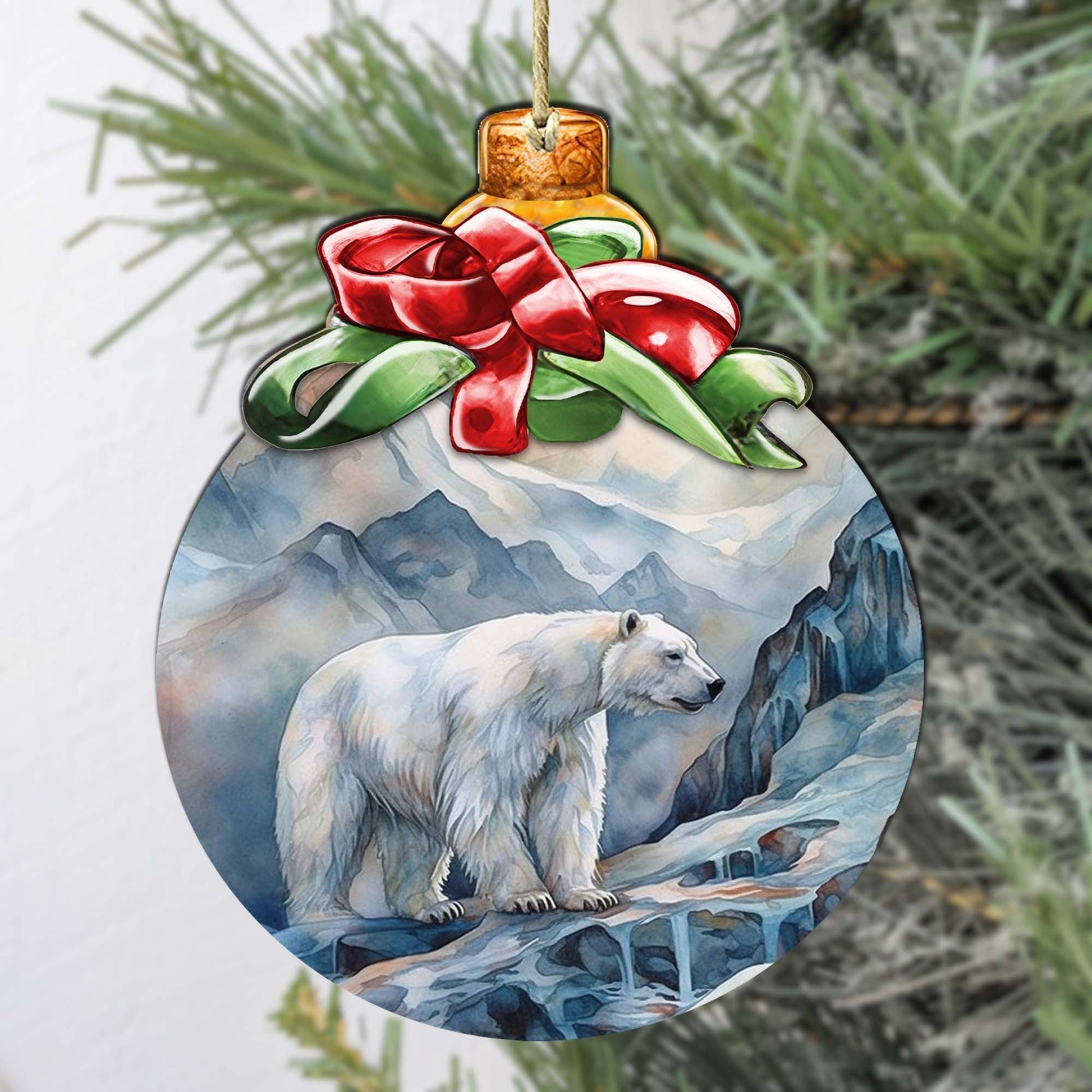 Arctic Frost Peak Polar Bear Wooden Ornaments by G.Debrekht - Wildlife Holiday Decor - 870020