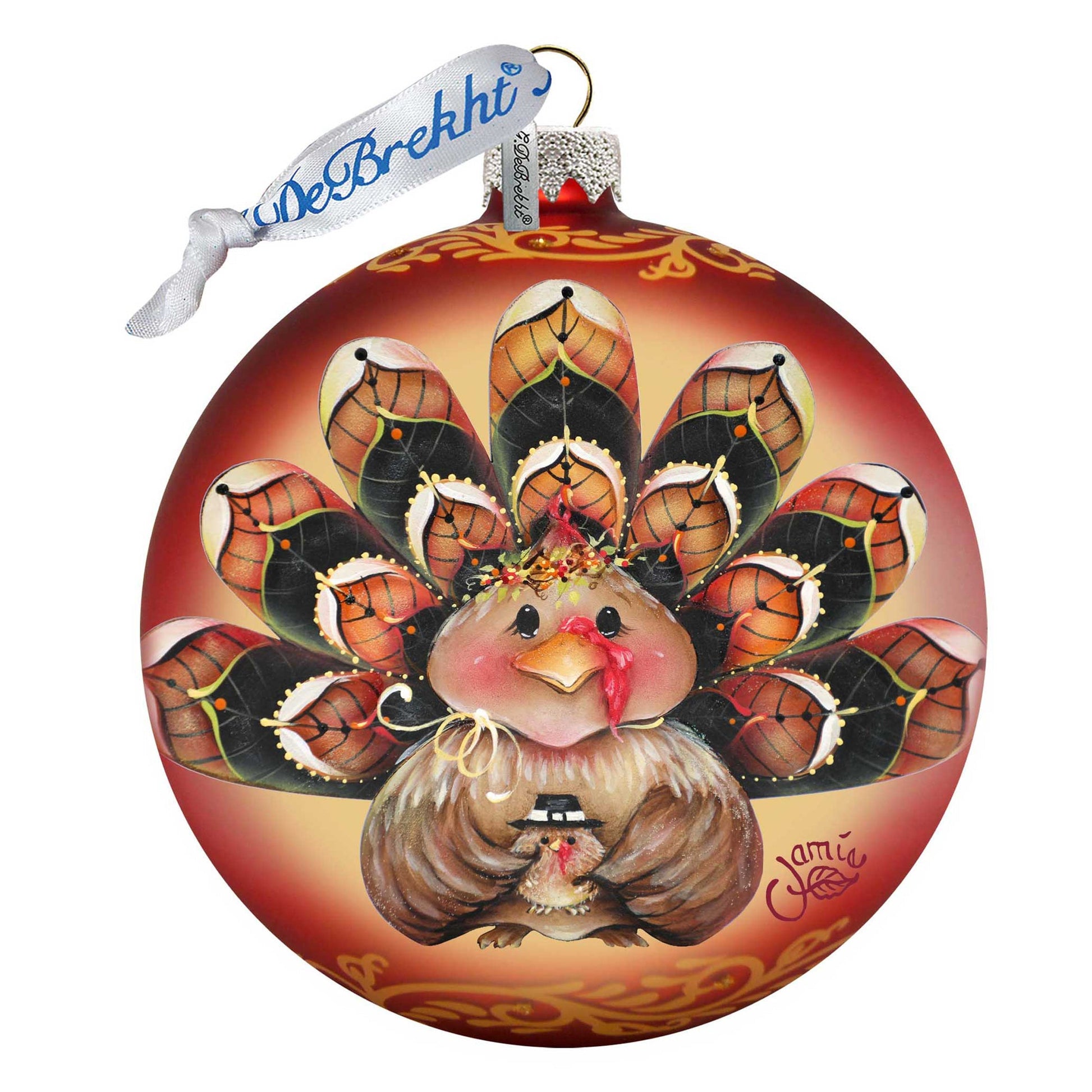 Be Thankful Turkey Sitter Ball Glass Ornament by Jamie Mills-Price - Thanksgiving Halloween Decor - 71210-7702