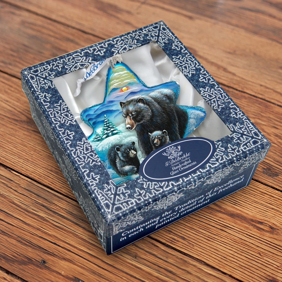 Black Bears Story North Star Glass Ornament by G. DeBrekht - Wildlife Holiday Decor - 755-090