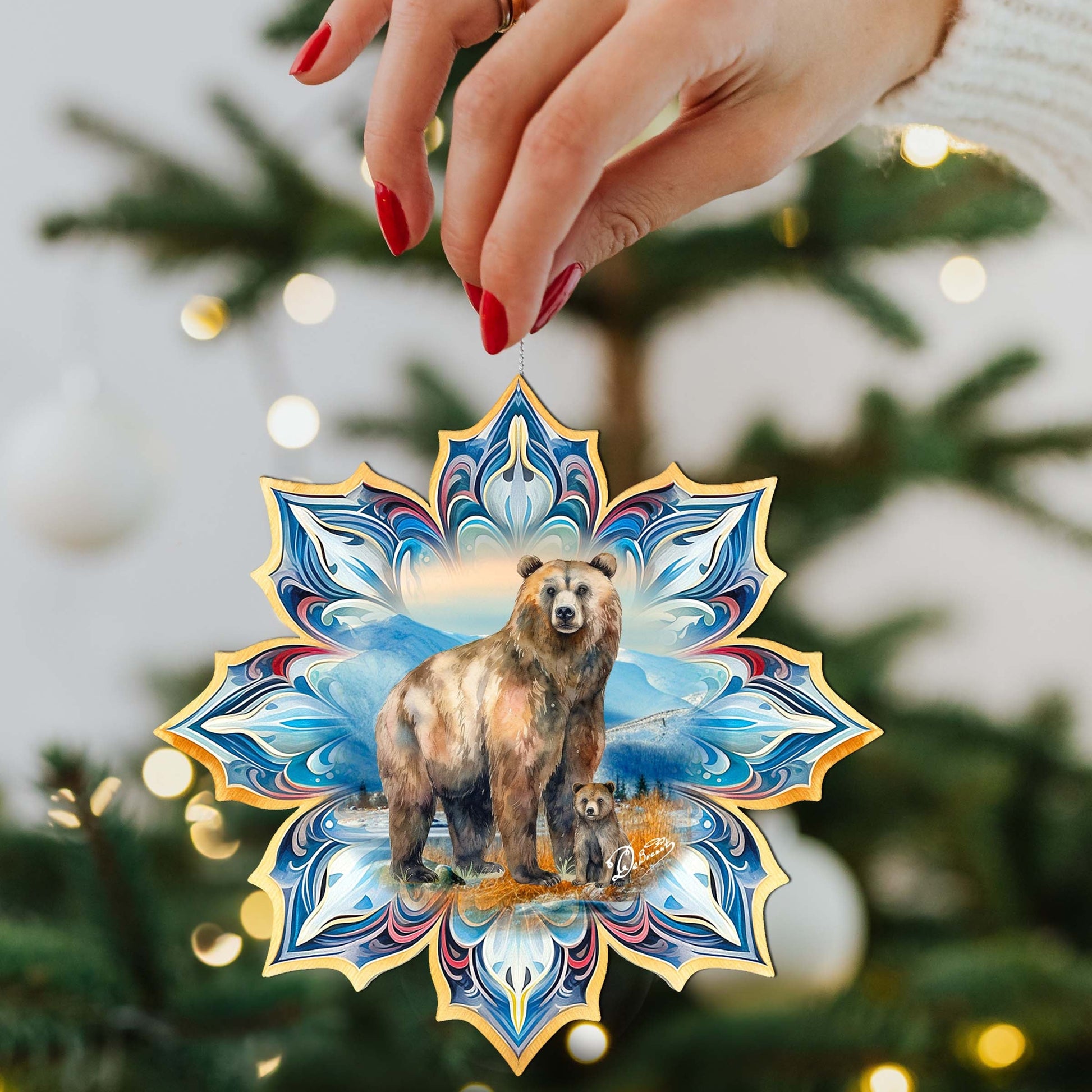 Brown Bear Snowflake Wooden Ornaments by G. Debrekht - Nature Wildlife Decor - 8688409