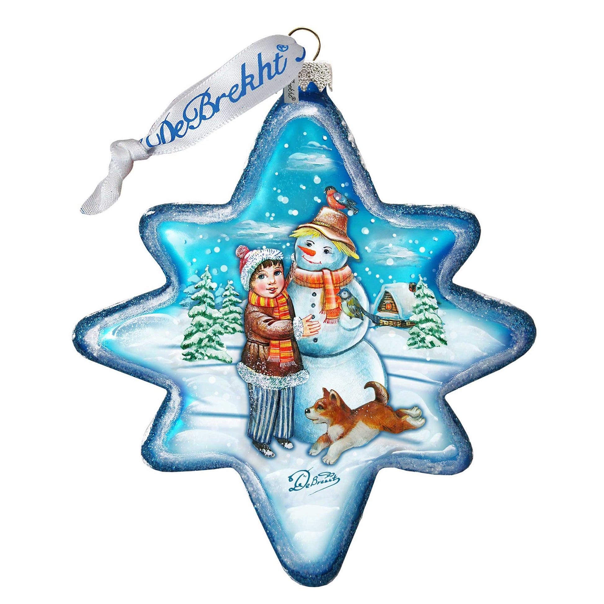 Build A Snowman North Star Glass Ornament by G. DeBrekht - Christmas Santa Snowman Decor - 755-009