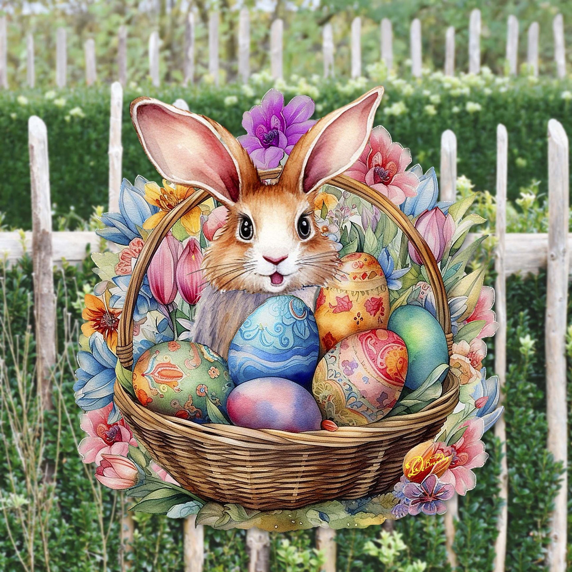 Bunny in a Basket Holiday Door Decor by G. Debrekht - Easter Spring Decor - 8652764H