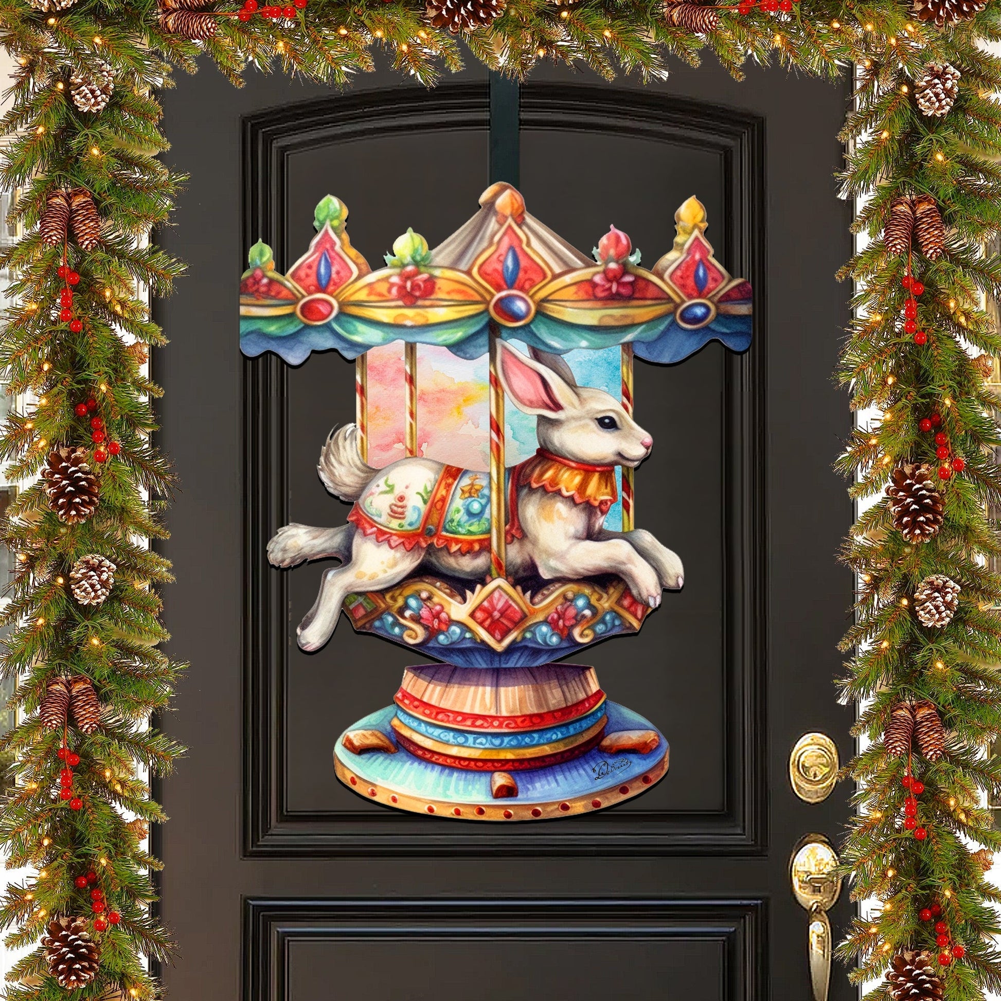 Carousel Bunny Holiday Door Decor by G. Debrekht - Christmas Decor - 8611084H