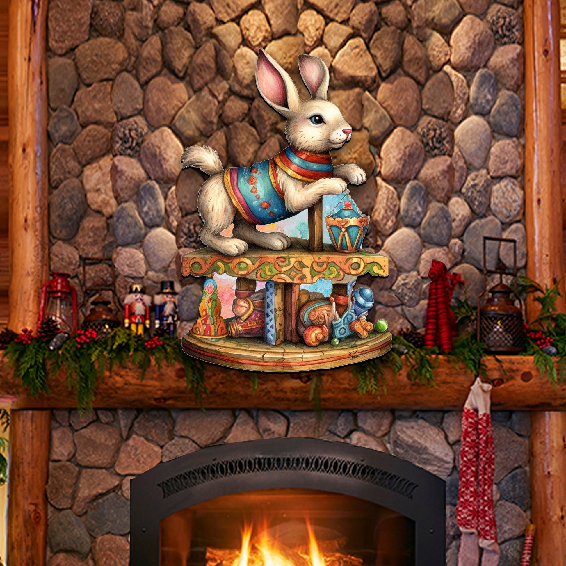 Carousel Bunny with Toys Holiday Door Decor by G. Debrekht - Christmas Decor - 8611086H