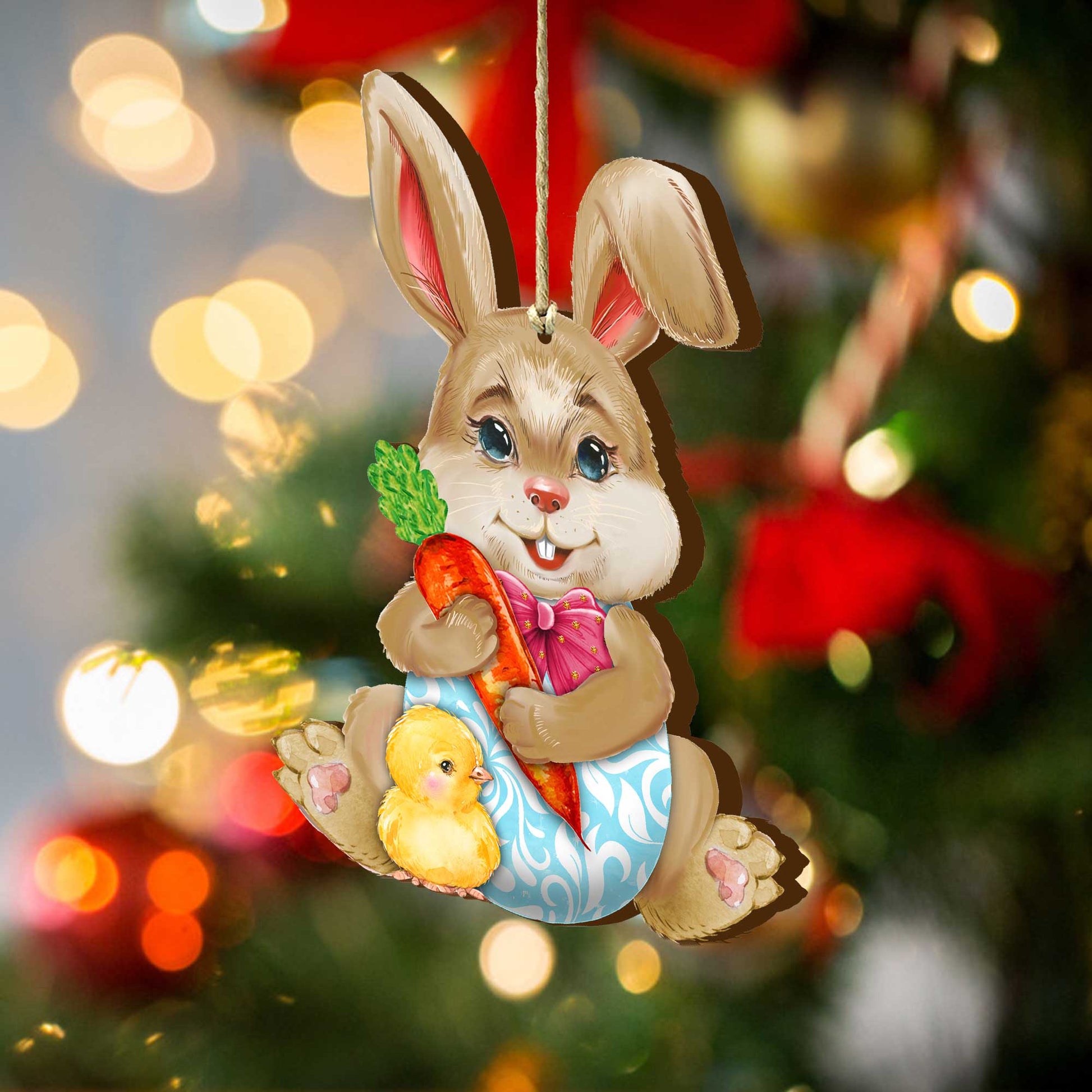 Carrot Bunny with Chick Wooden Ornaments by G.DeBrekht - Easter Spring Decor - 815432-1