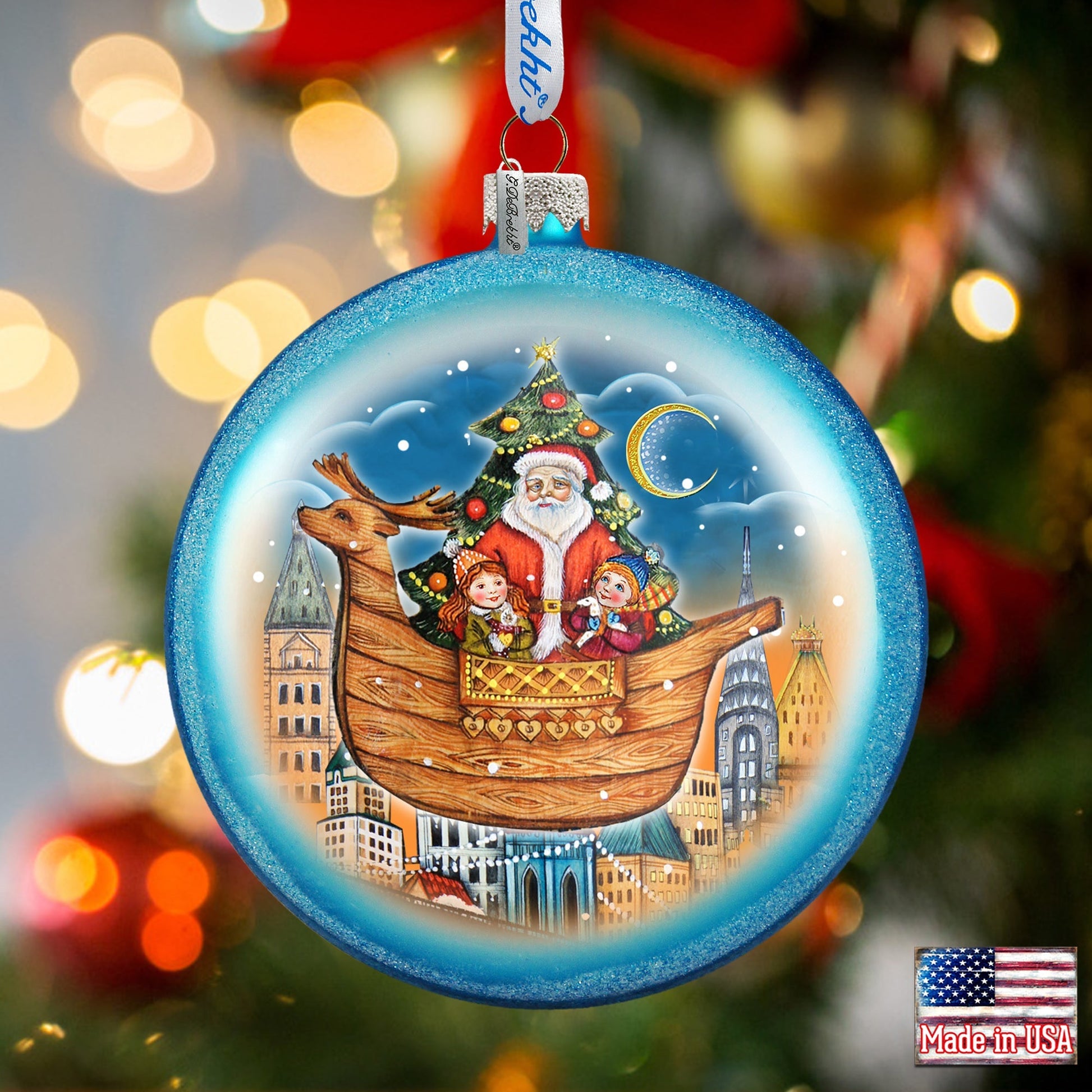 Christmas Arrival Glass Ornament by G. DeBrekht - Christmas Santa Snowman Decor - 744-032B
