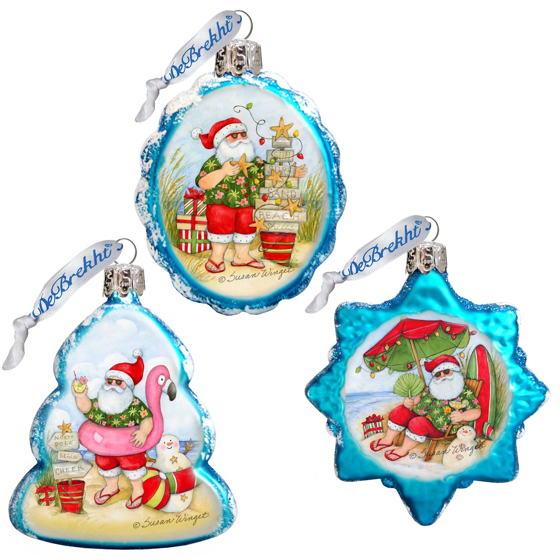 Christmas at the Beach Mercury Glass Ornaments Set of 3 by Susan Winget - Santa and Snowman Decor