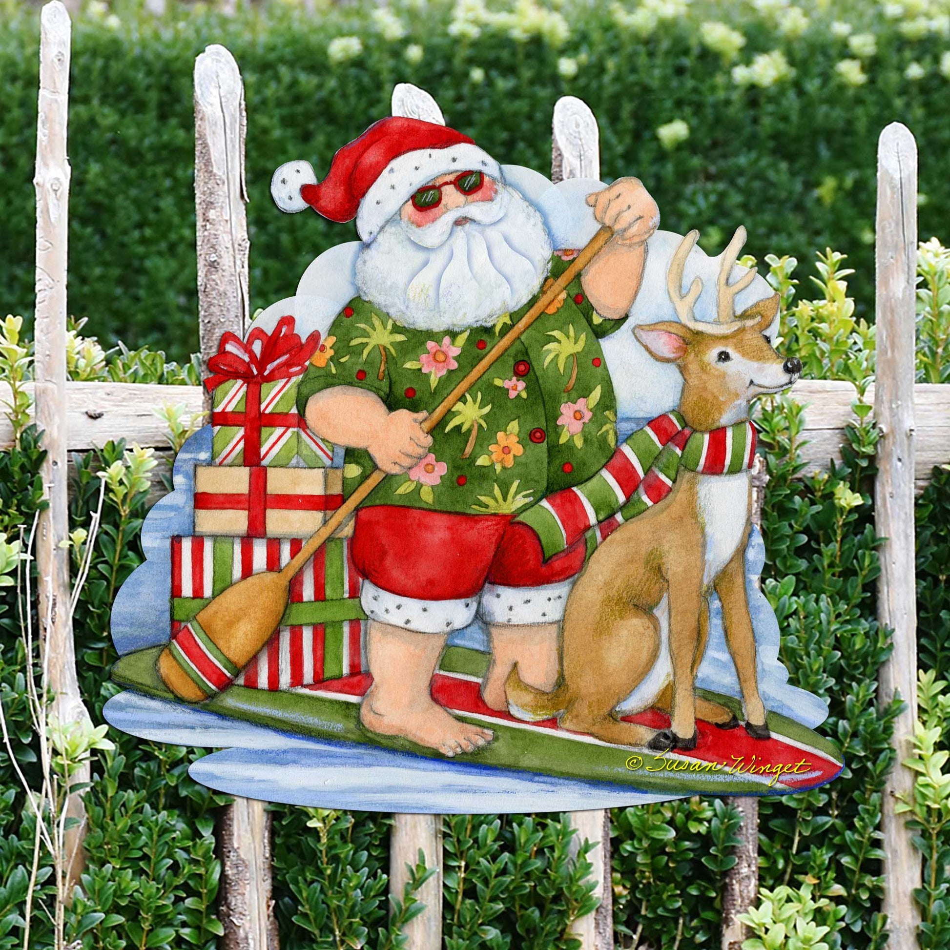 Christmas Decoration Door Hanging Paddleboarding Santa - Santa Door Hanger by Susan Winget Handmade Gift - 8471114H-SW