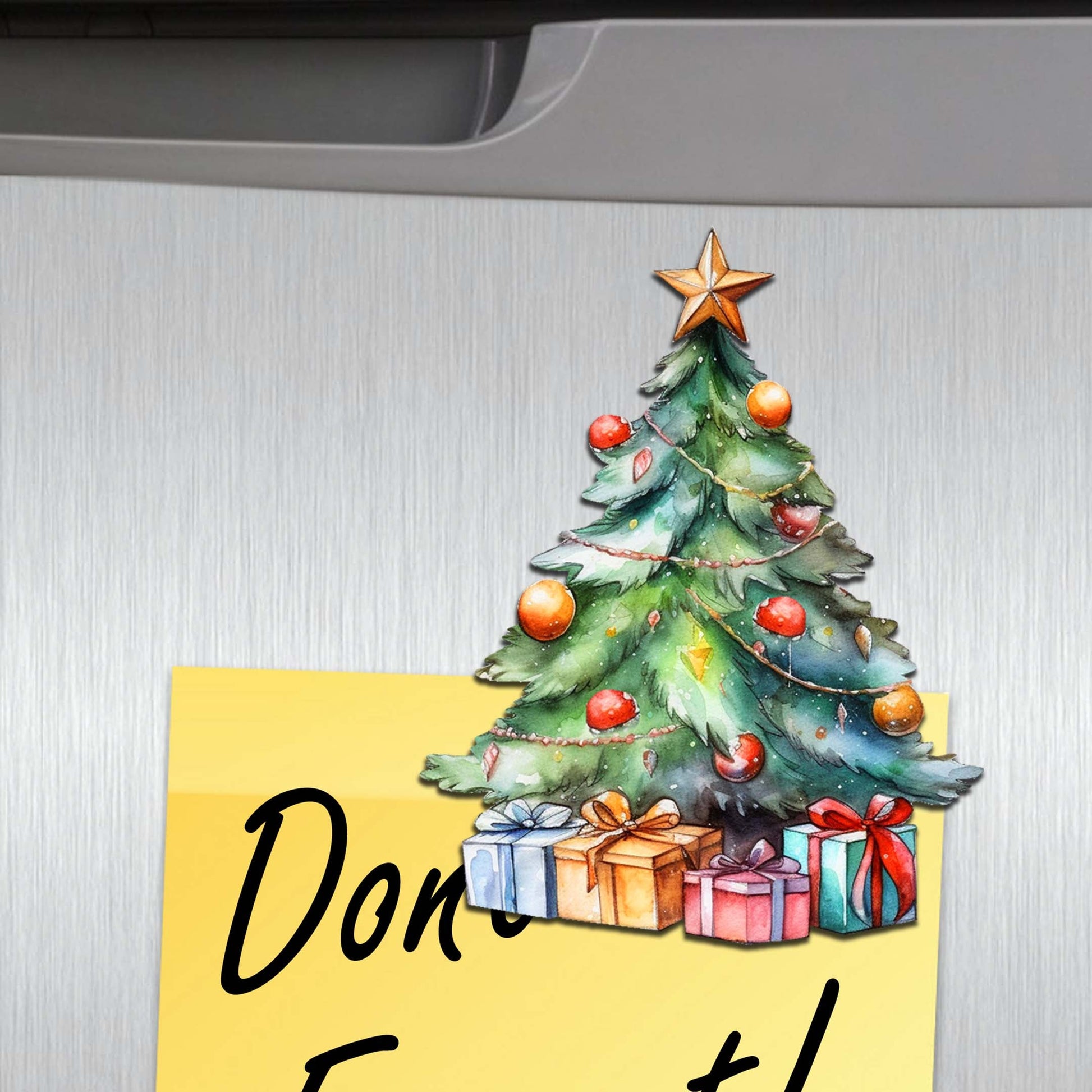 Enhance your holiday decor with this set of 6 decorative wooden magnets featuring beautiful Christmas tree designs by G. Debrekht. Made with high-quality materials, these magnets provide a festive touch to any magnetic surface. A perfect addition to your Christmas decorations.