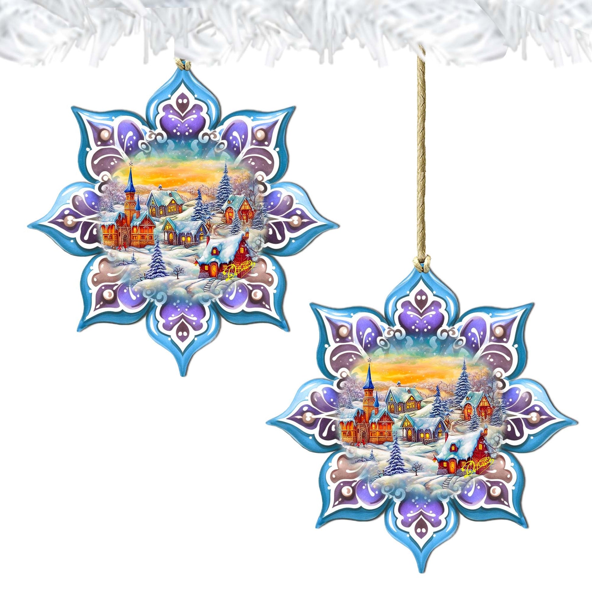 Expertly crafted by G. Debrekht, these Christmas Village Snowflake Wooden Ornaments are a must-have for your holiday Decor. Each ornament features intricate snowflake designs that add a touch of elegance to your Christmas tree. Made with high-quality materials and attention to detail, these ornaments are sure to become treasured pieces for years to come.