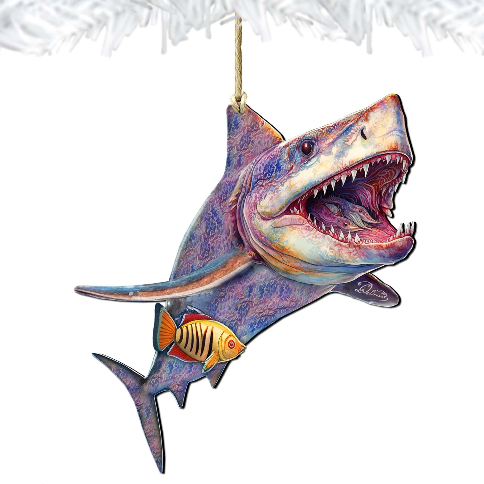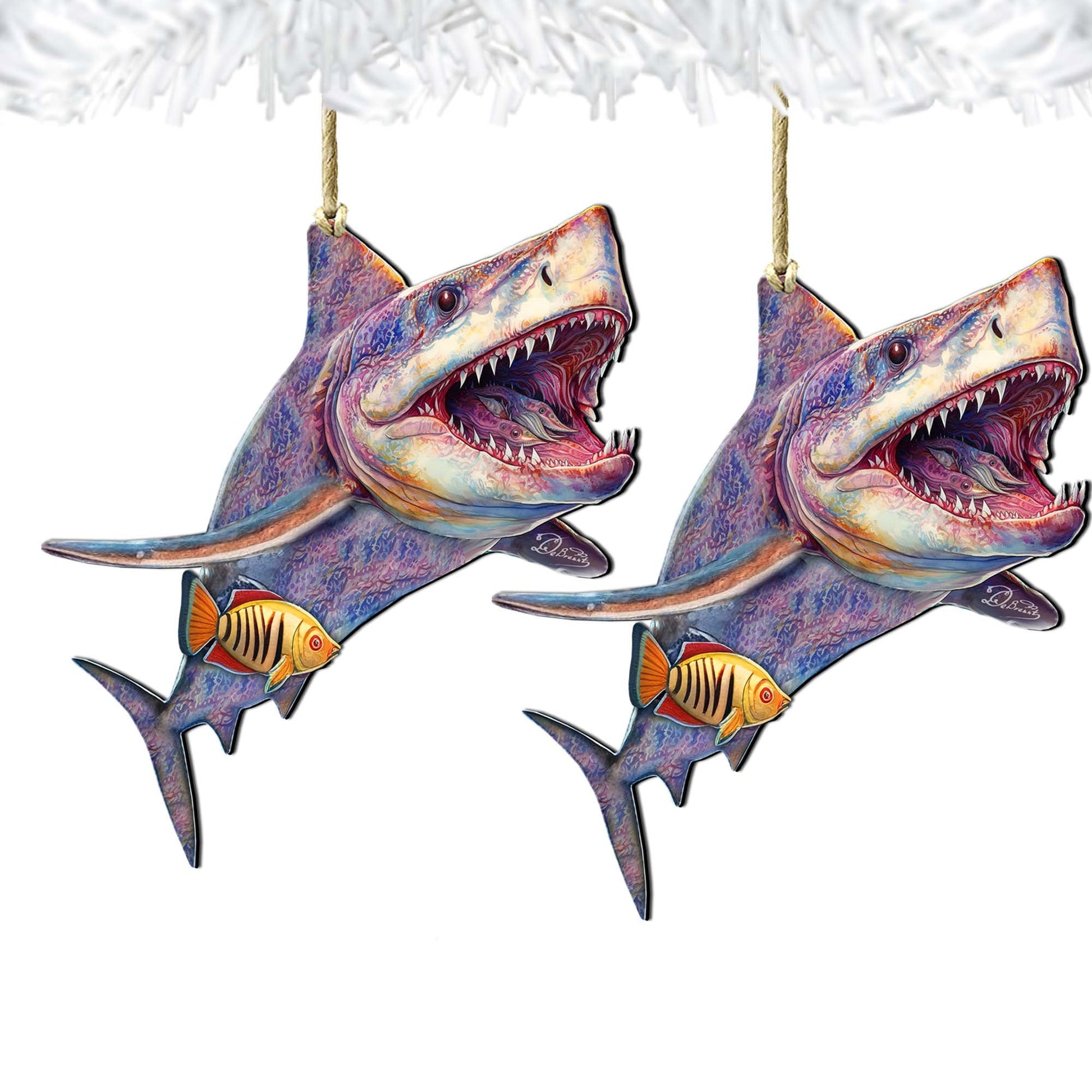 Coastal Christmas Decor - Shark Wooden Ornaments by G.Debrekht Coastal Holiday Decor - 8688201