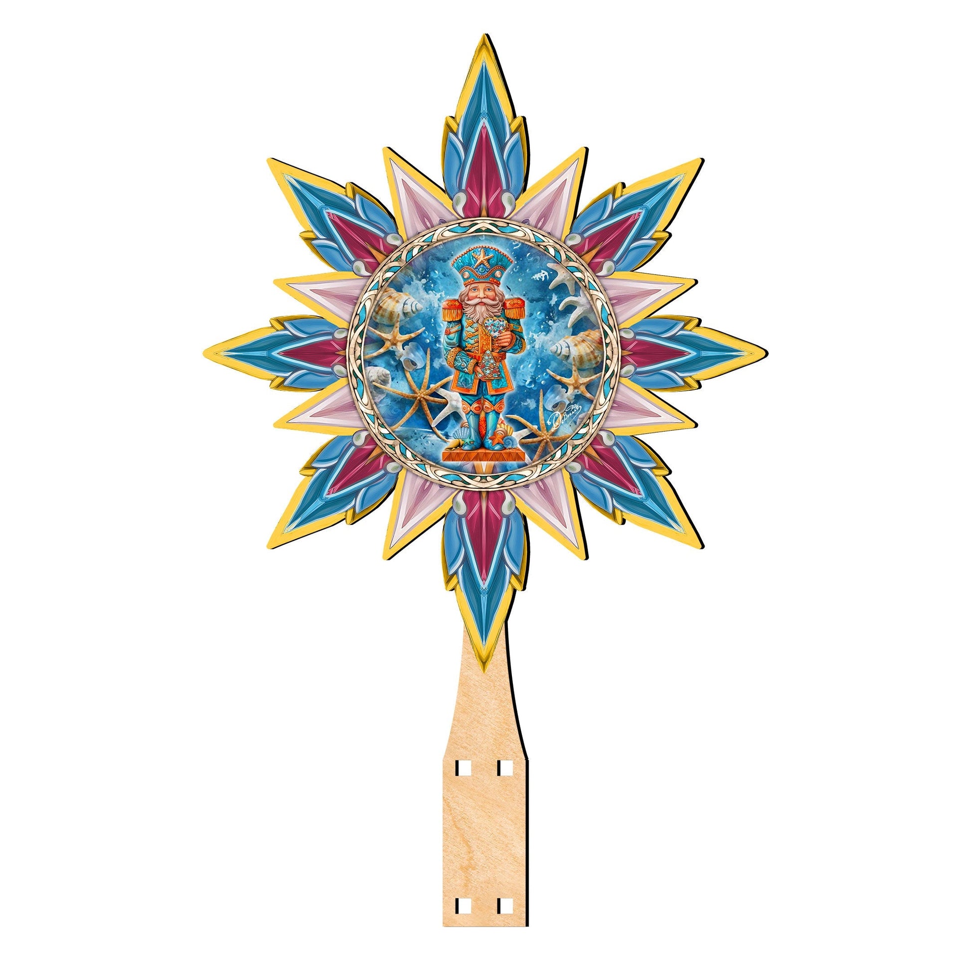 Introduce a unique touch to your holiday decor with our Coastal Nutcracker Tree Topper by G. Debrekht. Expertly crafted from wood, this coastal-themed topper will add a touch of elegance to any Christmas tree. Perfect for those who love coastal or beach-inspired decor. Shop now and make your tree stand out!