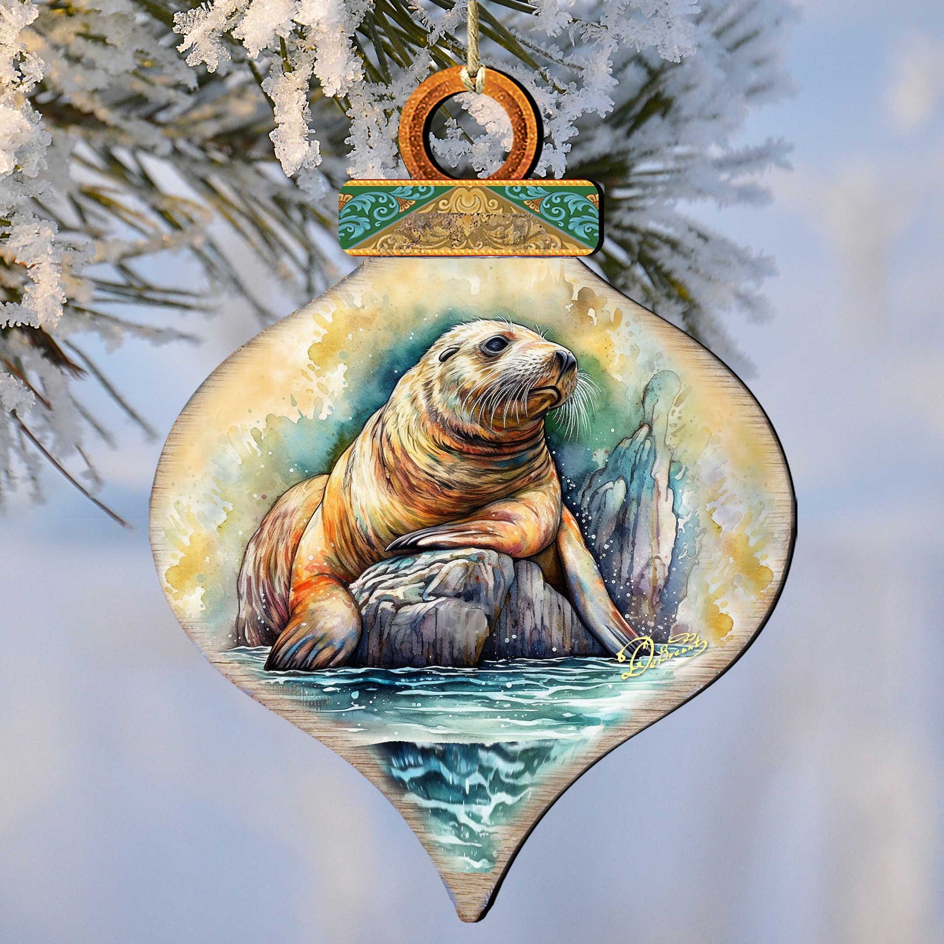Coastal Sea Lion Wooden Ornaments by G.Debrekht - Wildlife Holiday Decor - 8710126