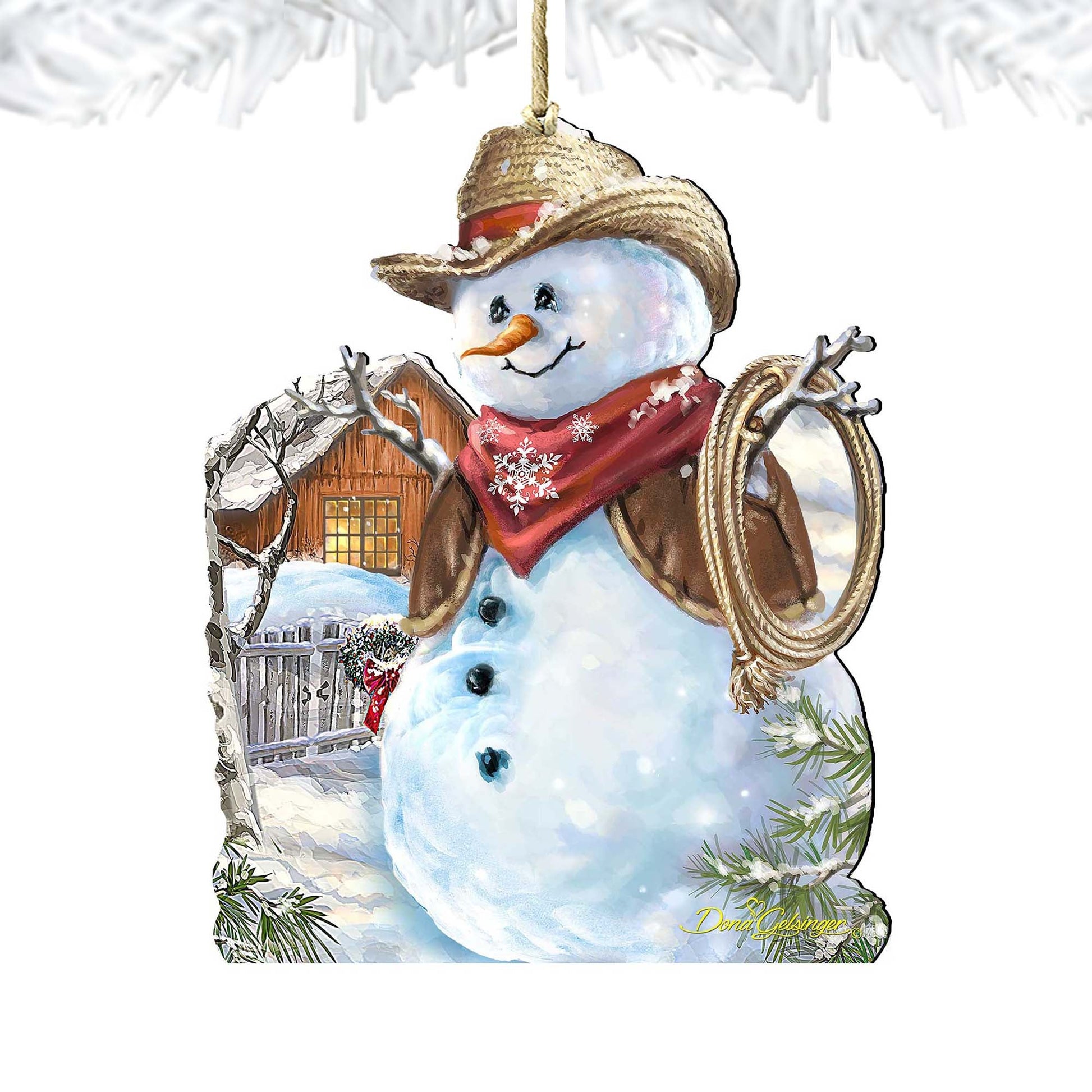 Cowboy Snowman Wooden Ornaments by Gelsinger - Christmas Santa Snowman Decor - 8121115-1541