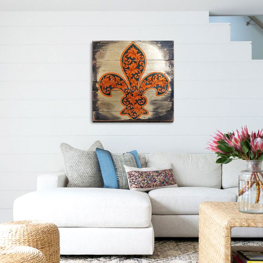 Cross Fleur De Lis Wooden Gold Plated Wall Art by Museum Icon - Inspirational Icon Decor - 85098