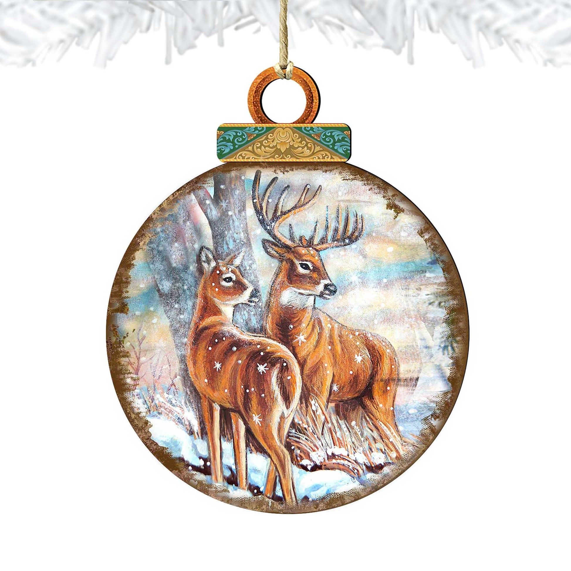 Deer's Family Ball Wooden Ornaments by G. DeBrekht - Wildlife Holiday Decor - 8025212
