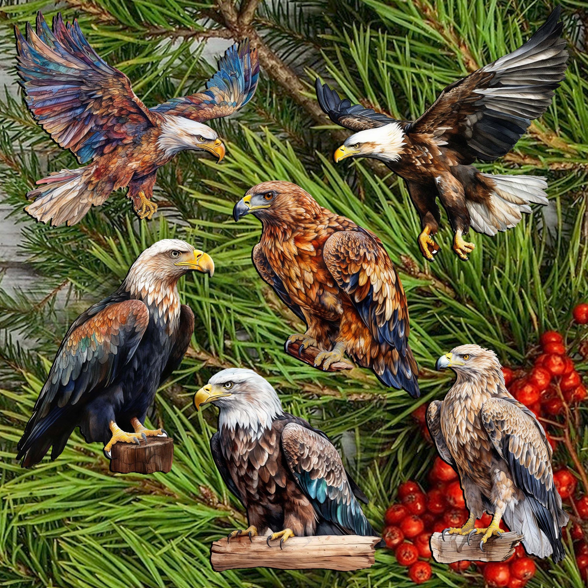 Eagle's Flight Decorative Wooden Clip-on Ornaments Set of 6 by G. Debrekht - Wildlife Decor - 8090101C-S6