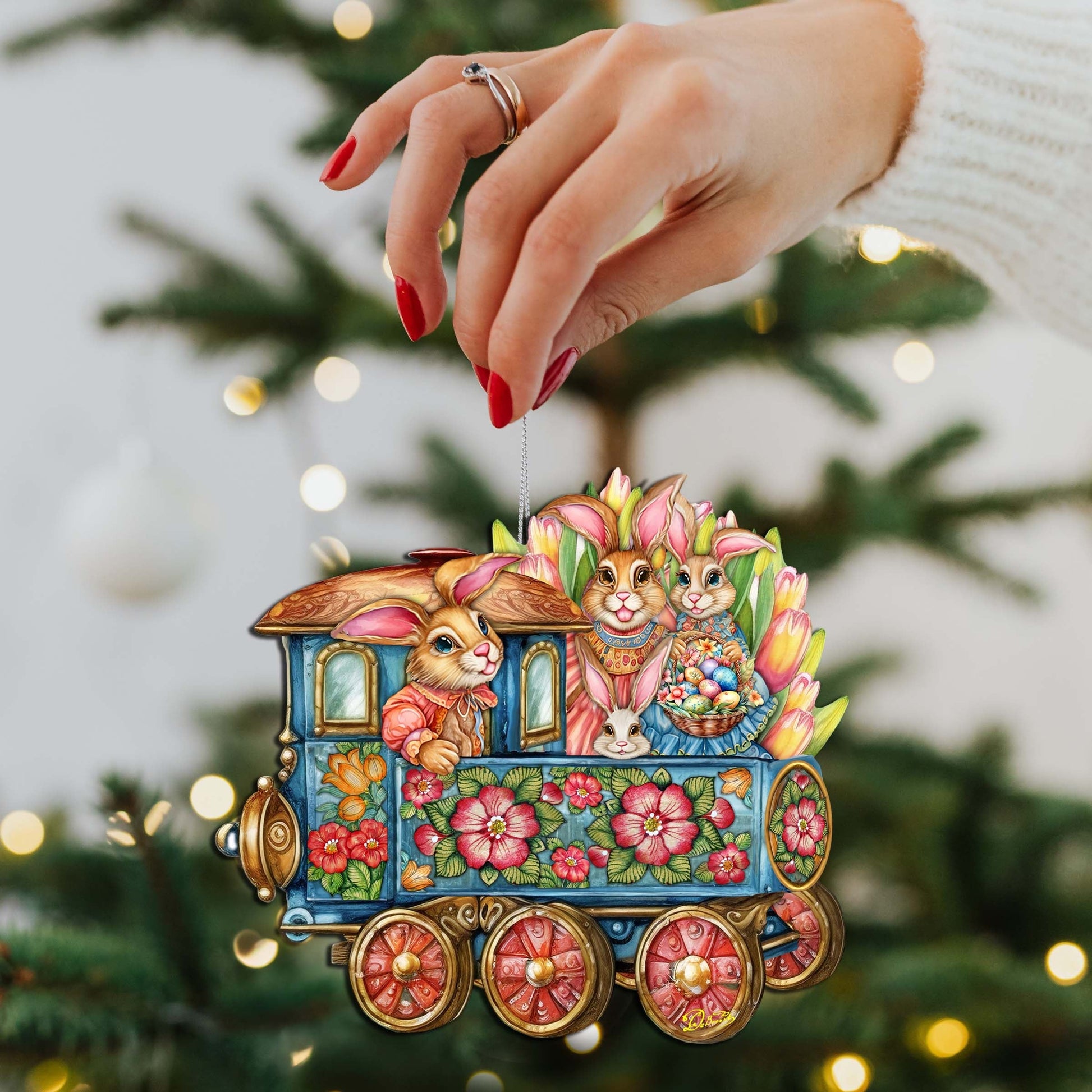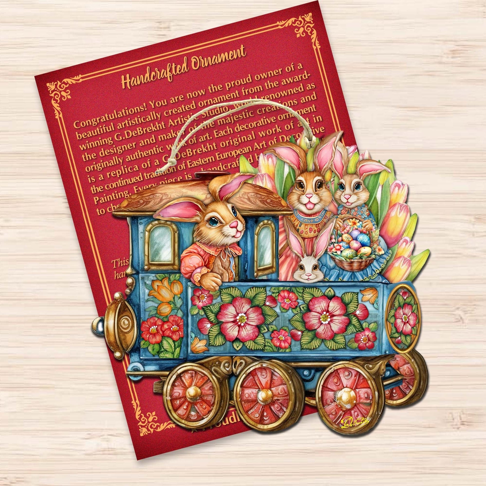 Easter Bunny Train Wooden Ornaments by G. DeBrekht Easter Spring Decor - 8652781