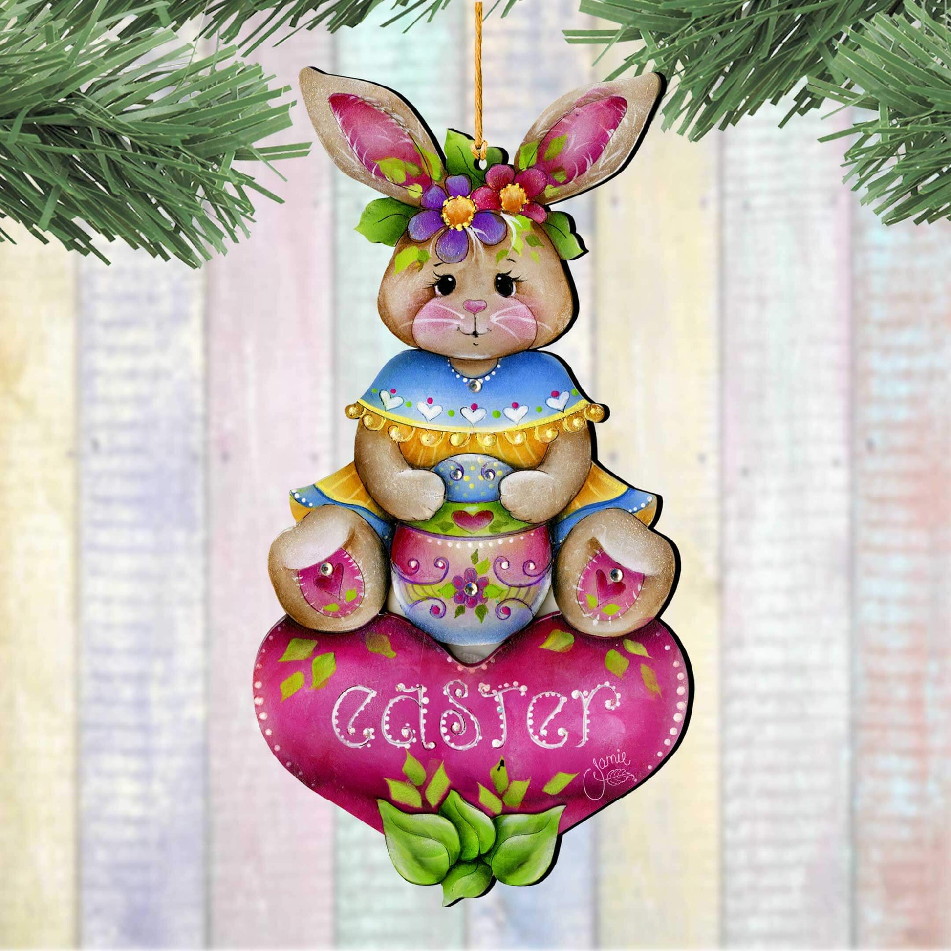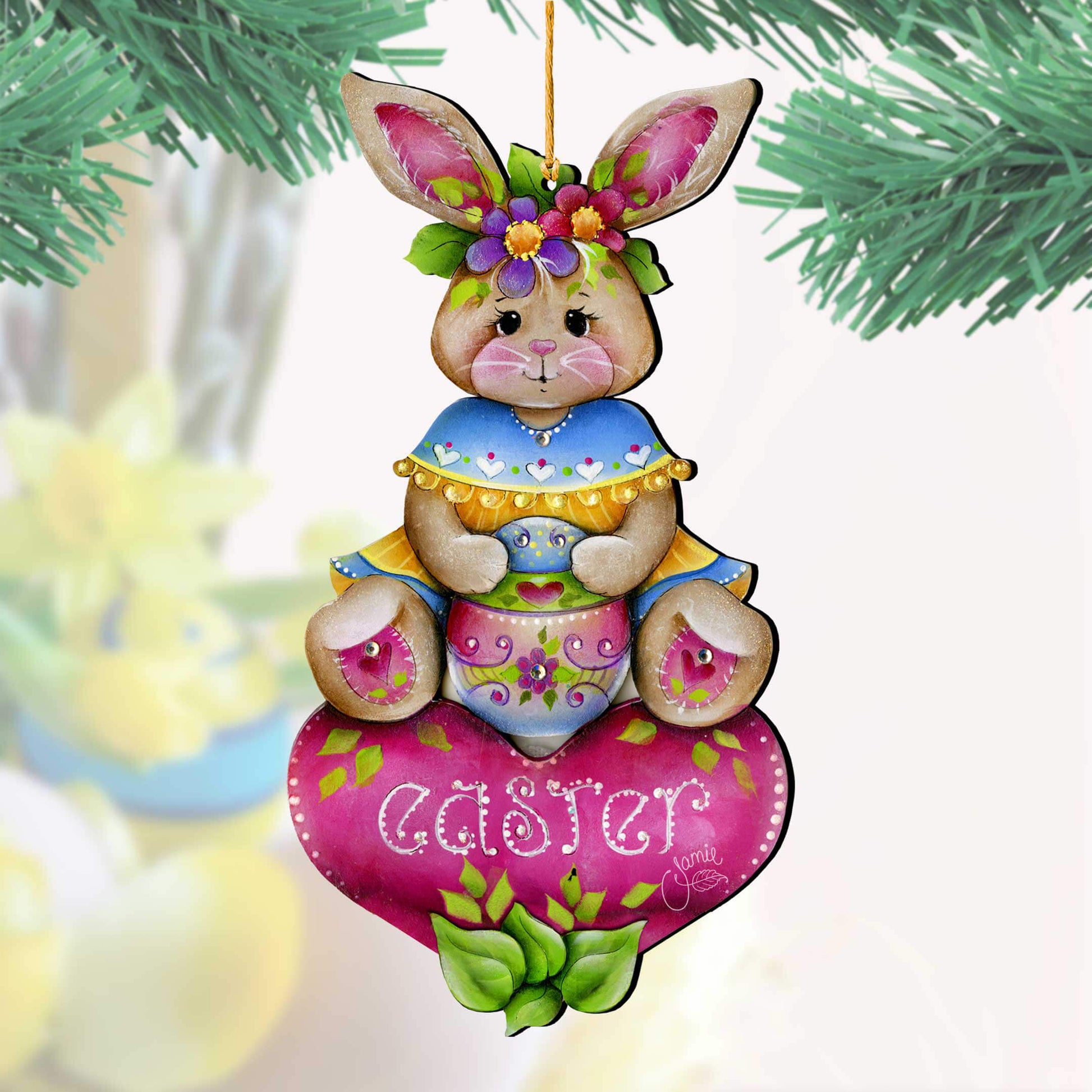 Easter Bunny Wooden Ornaments - Handcrafted Easter Decor - Bunny Art by Jamie Mills-Price - 8652826