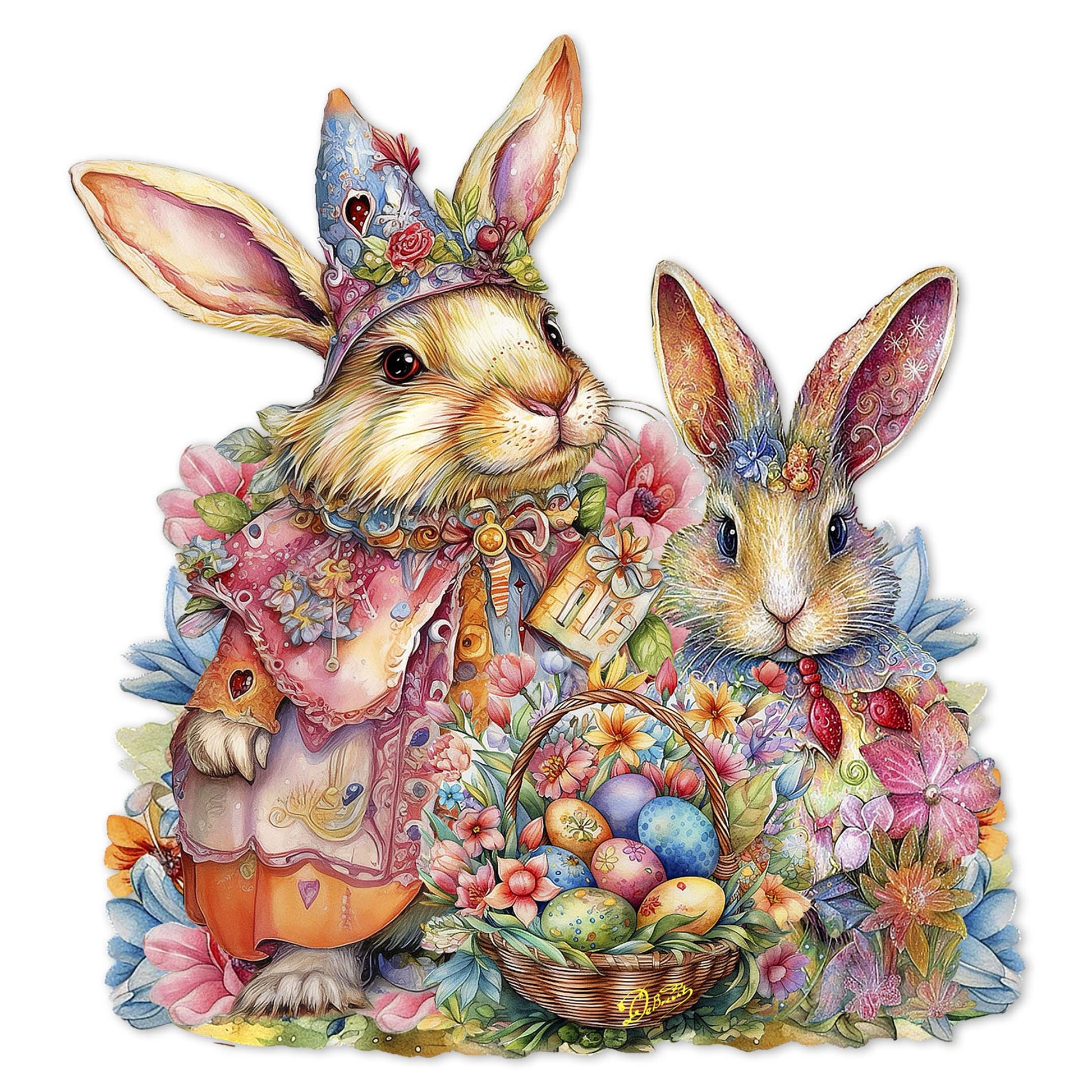 Decorate your home this Easter season with our Easter Sweet Couple Holiday Door Decor. This handcrafted piece by G. Debrekht features a bunny and colorful eggs, adding a fun and festive touch to your spring Decor. This beautiful and unique decoration brings a touch of whimsy and joy to any doorway.