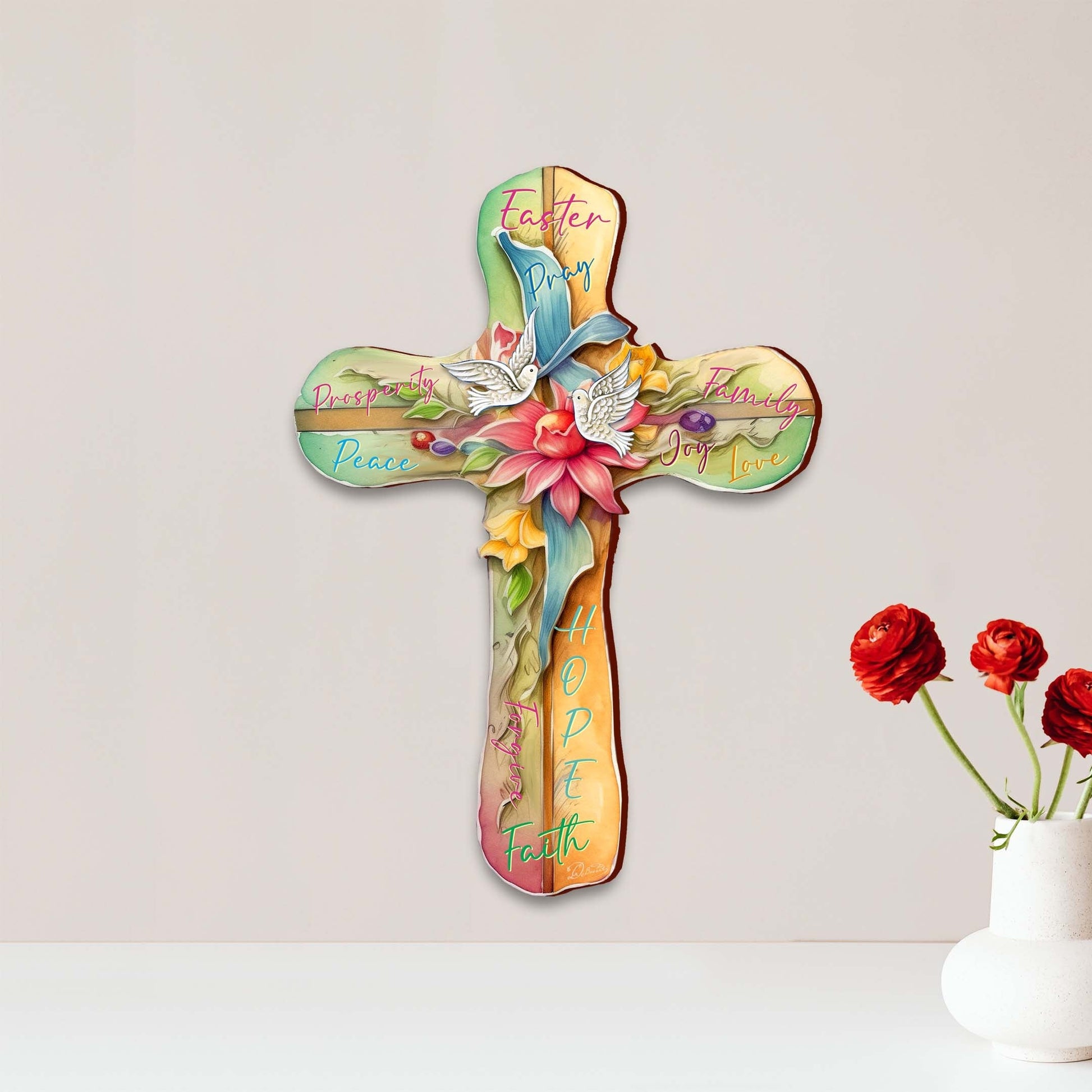 Easter Wooden Cross with Doves by G. Debrekht - Easter Spring Decor - 88167