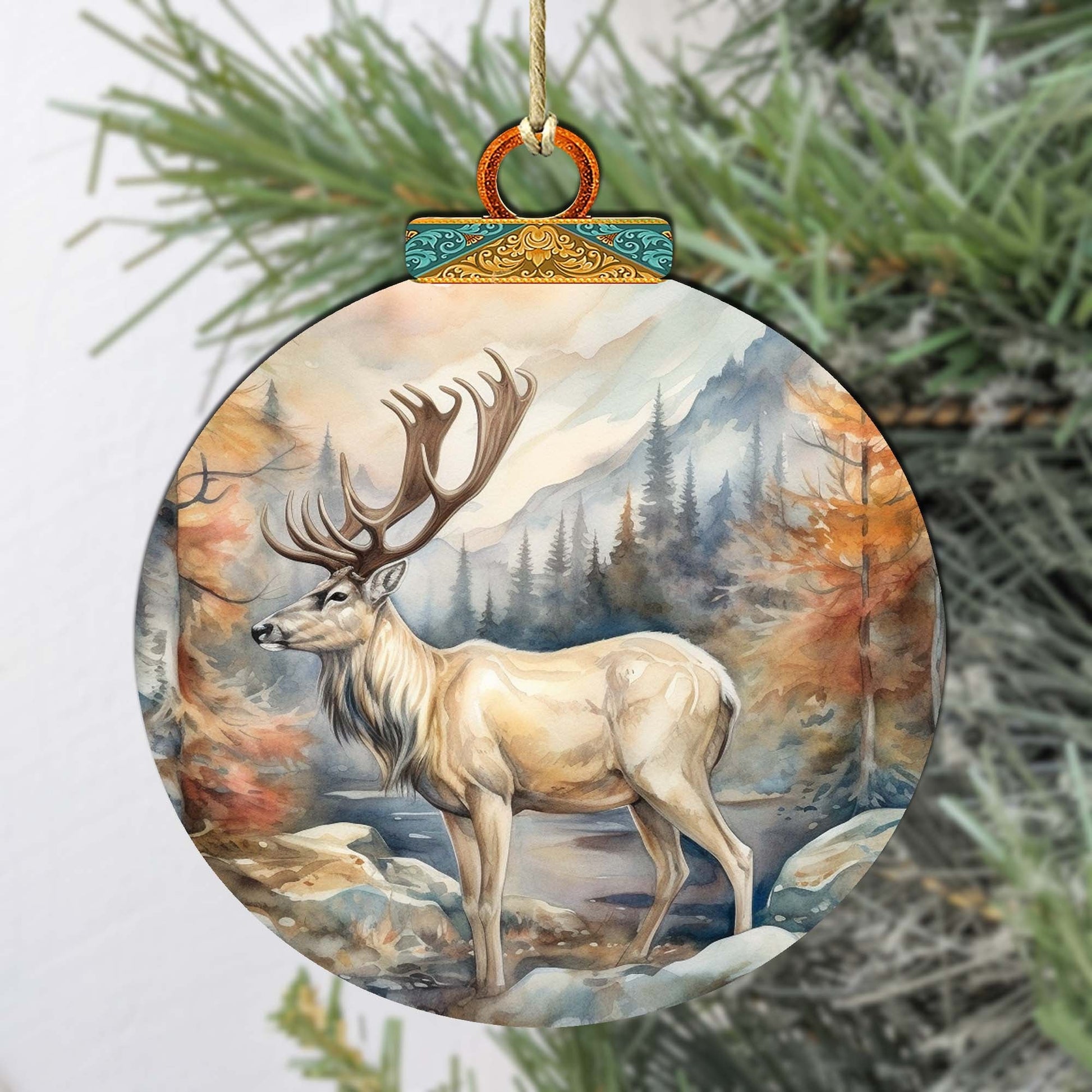 Elk in Alaskan Heights Wooden Ornaments by G.Debrekht - Wildlife Holiday Decor - 870056