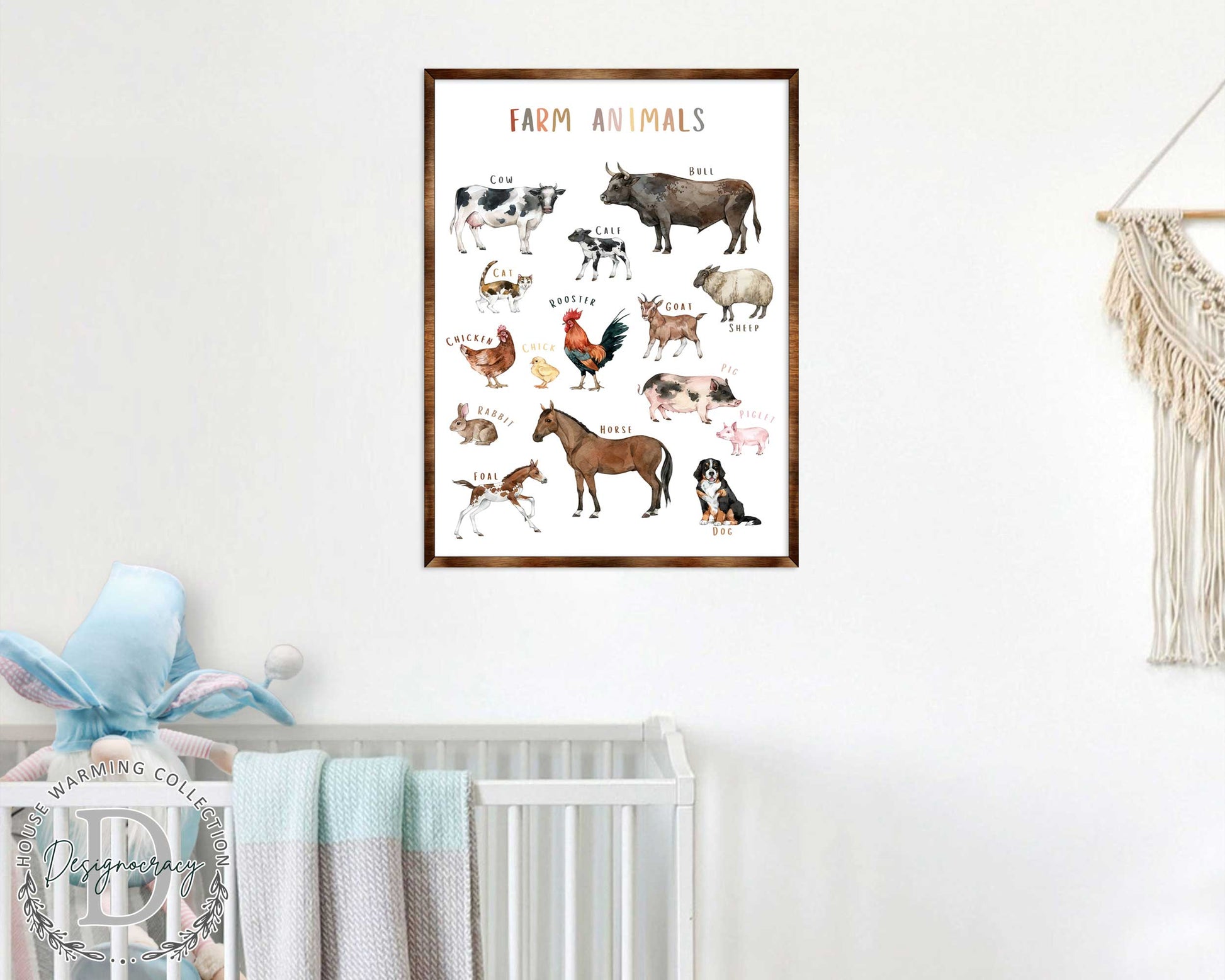 Farm Animals - Wooden Kids Room Decor - First day of school gift - ABC 123 Kids - Montessori Homeschool wooden poster I Educational Poster - Classroom Decor - 310215