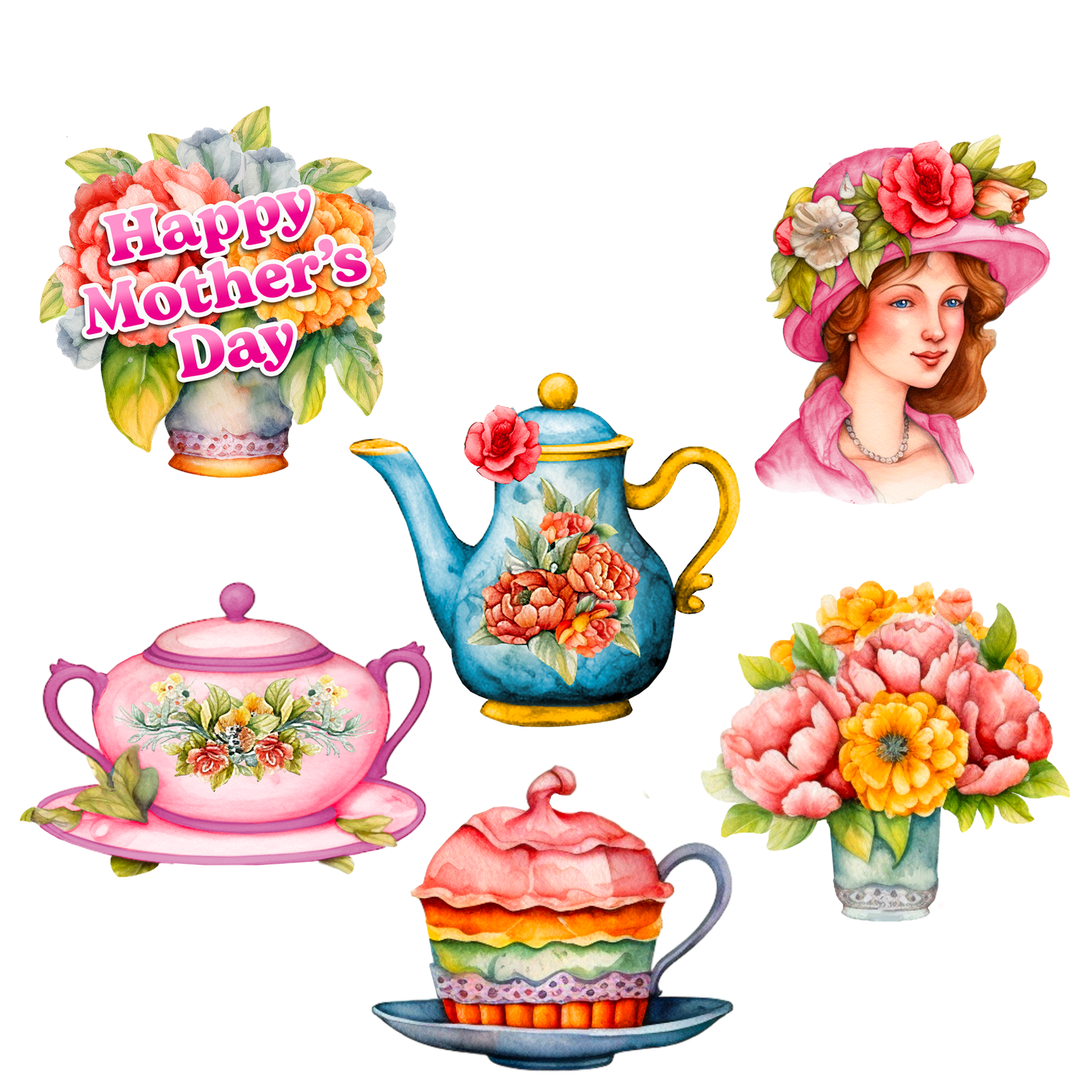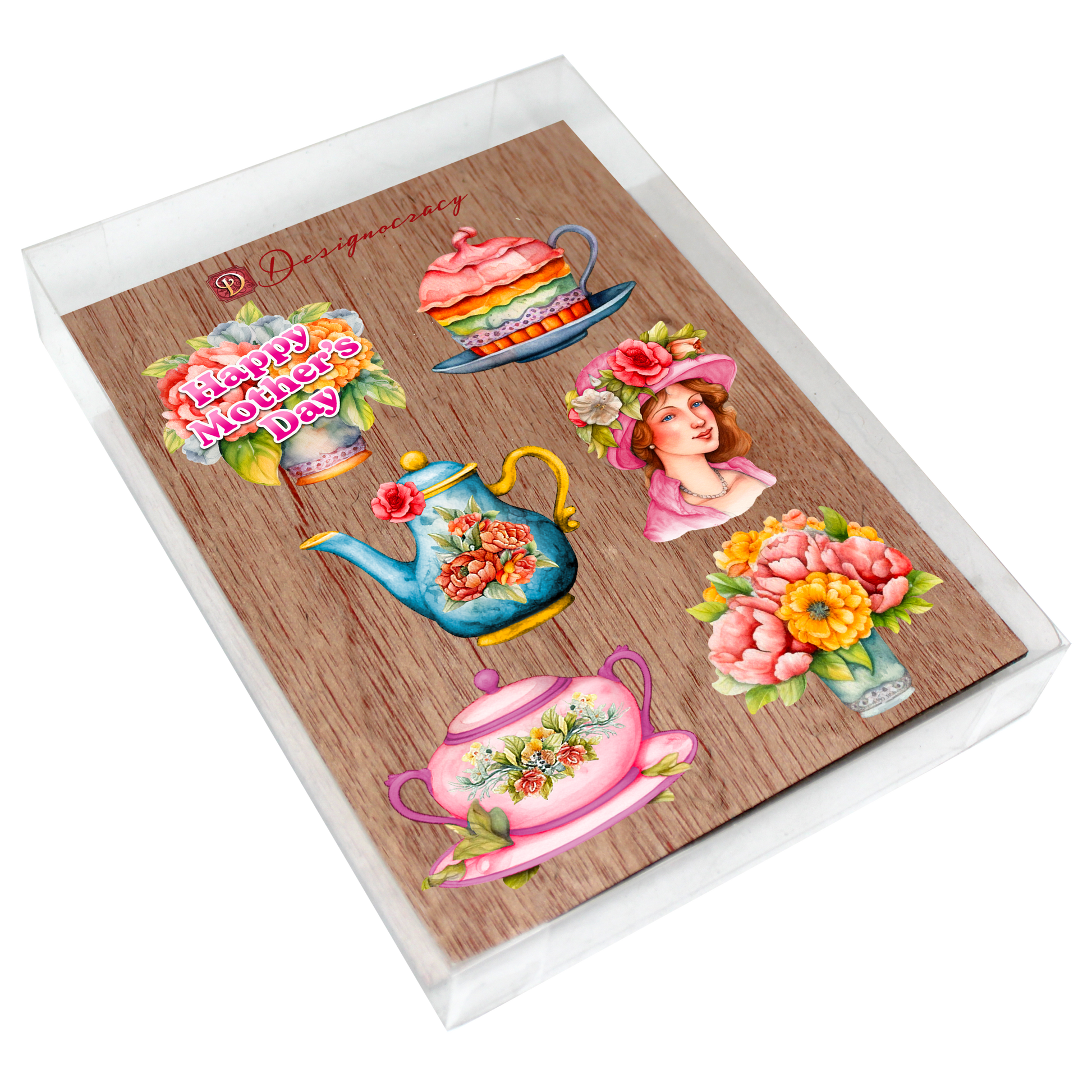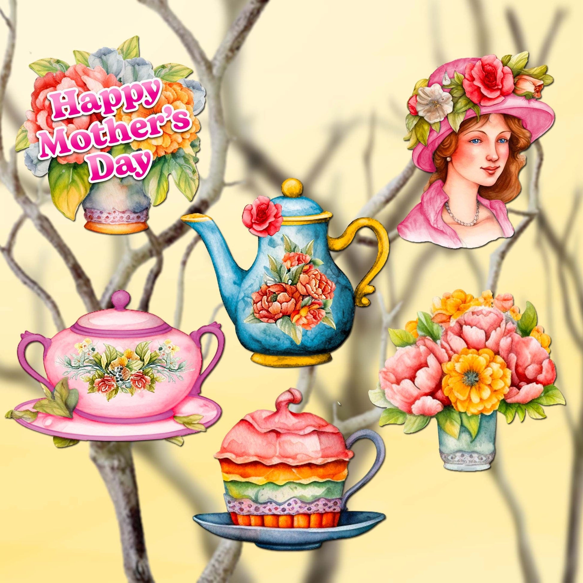 Celebrate Mother's Day with this decorative wooden clip-on ornament set of 6 by G. Debrekht. Show mom your appreciation with these charming ornaments featuring a cup of tea, symbolizing relaxation and love. This unique gift brings warmth and sentiment to your Mother's Day decor.