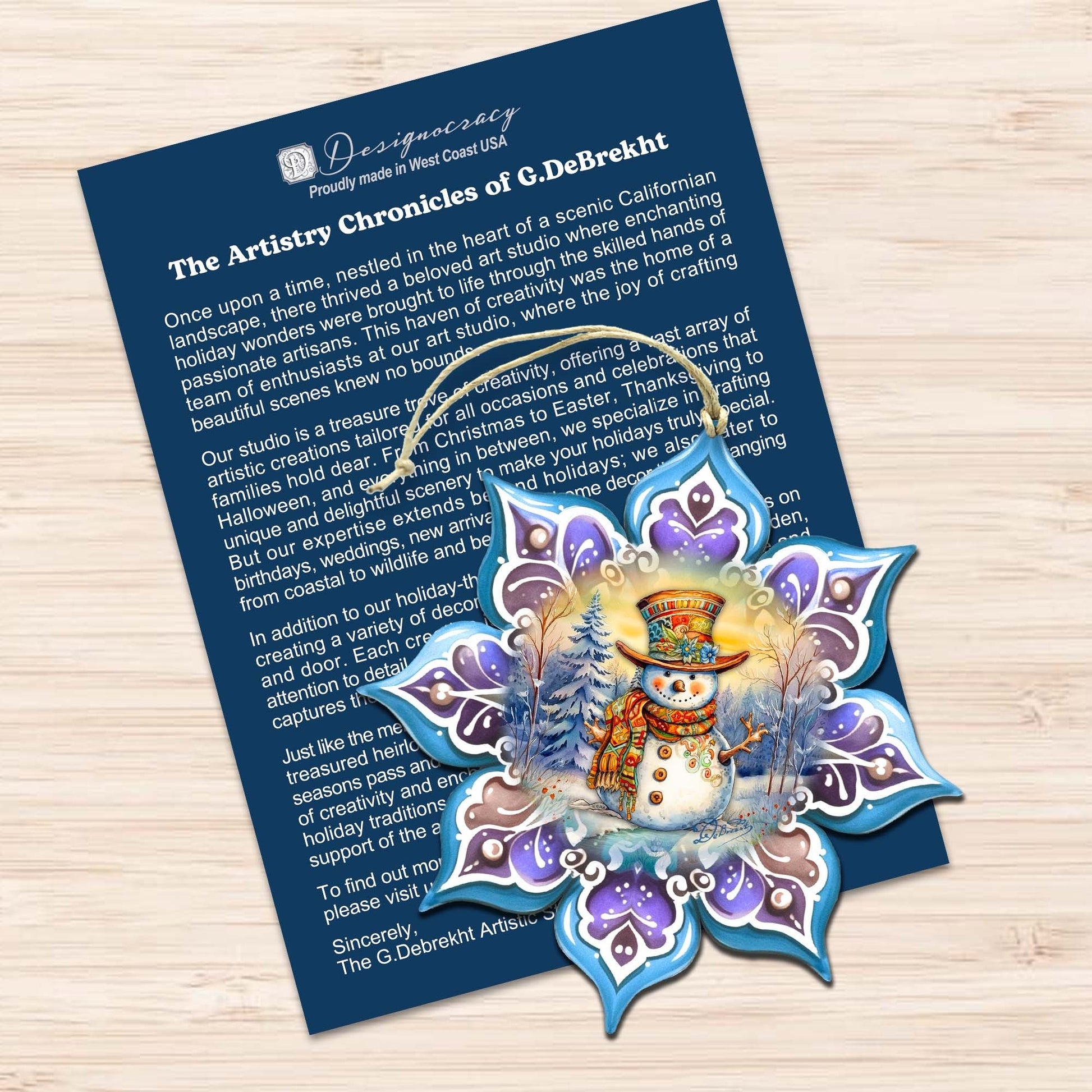 Happy Snowman Snowflake Wooden Ornaments Set of 3 by G. Debrekht - Christmas Decor - 8090149-S3