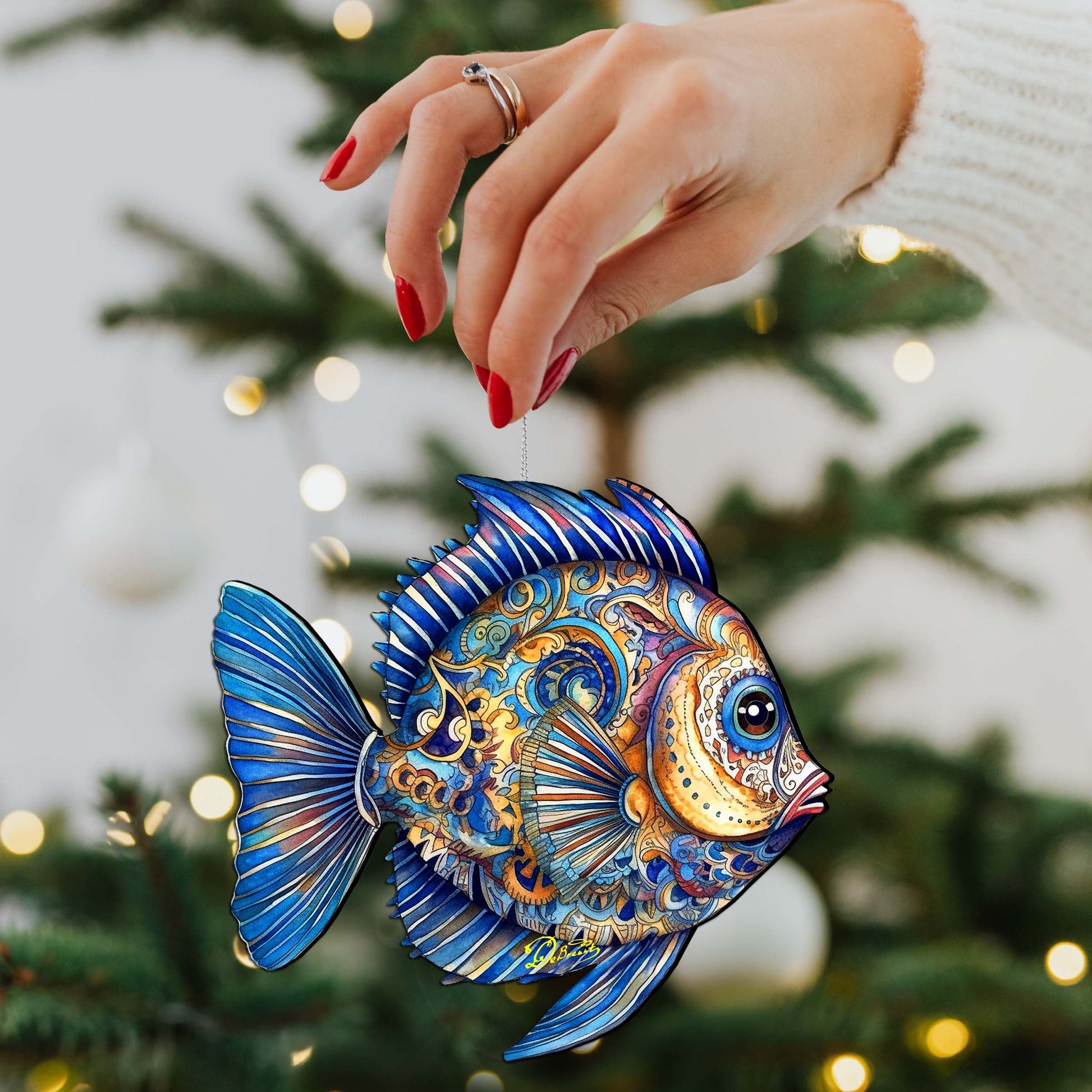 Holiday Coastal Ornaments - Turquoise Tide Fish Wooden Ornaments by G.Debrekht Coastal Holiday Decor - 8688305
