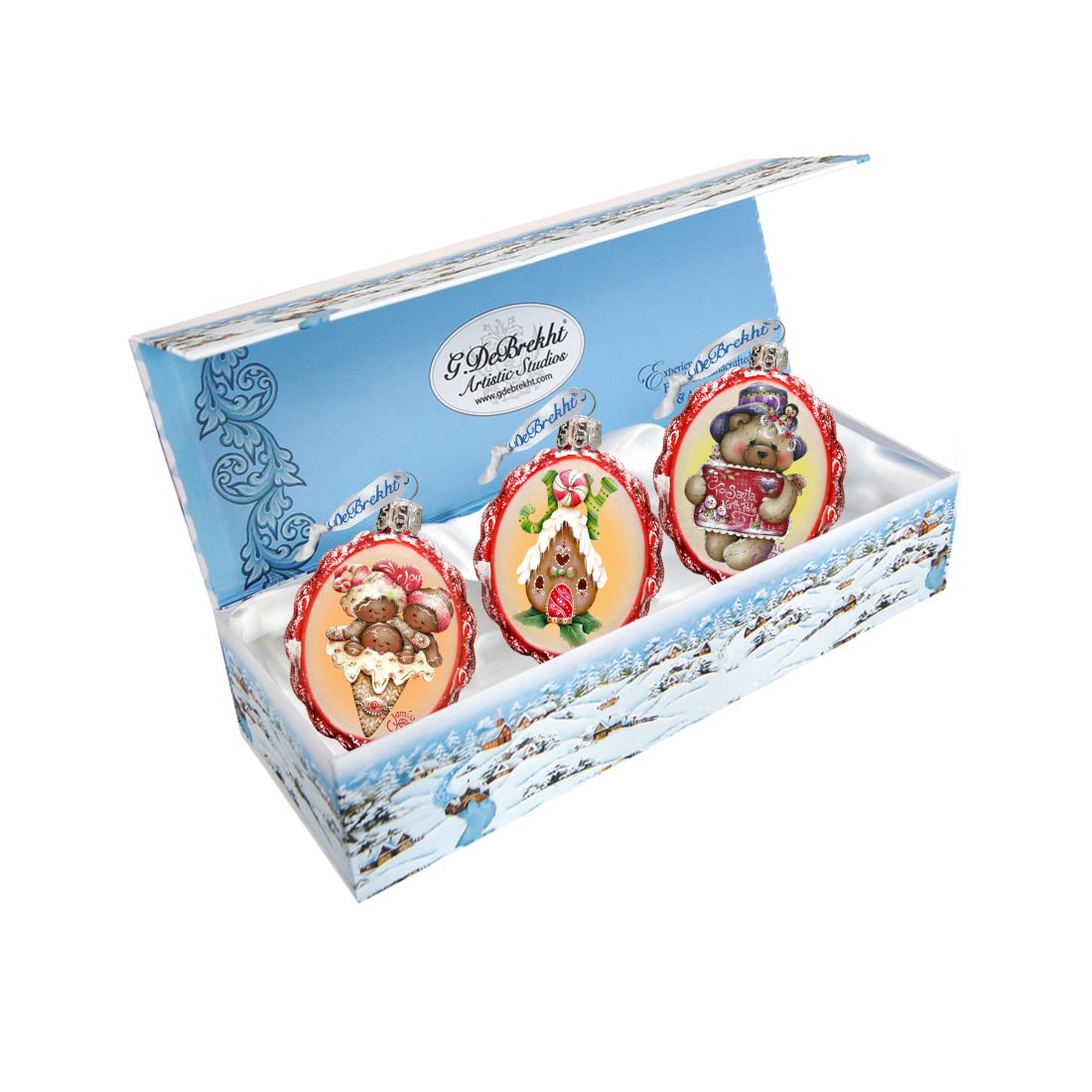 Looking for Gingerbread Cone and Teddy Bear hand-blown Elegant Glass Christmas Ornaments? Discover our exceptional small glass ornaments- delightful creations, handcrafted, painted, and Decorated by skilled artisans at G. Debrekht artistic Studio- handmade in the USA
