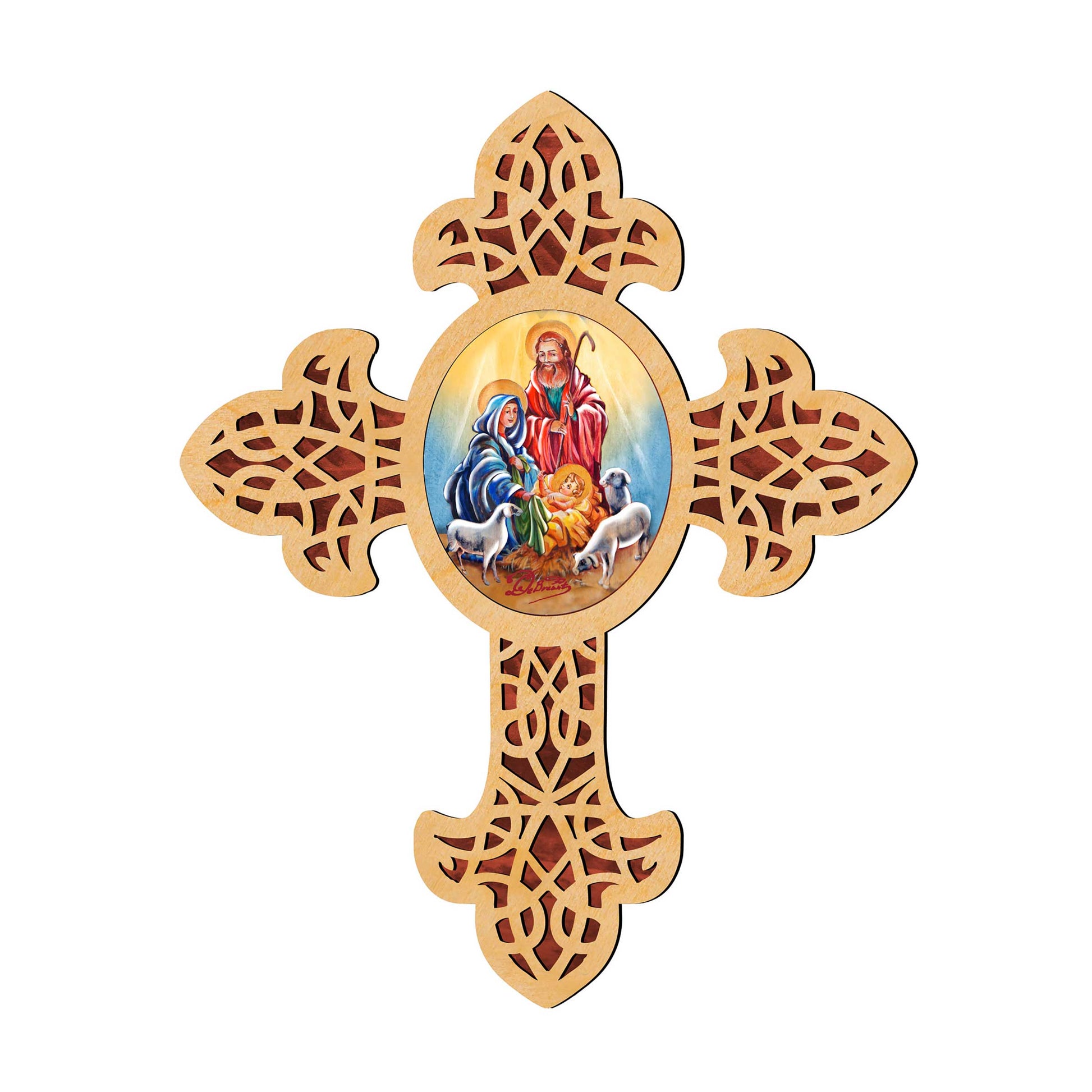 Holy Family Pointy Wooden Cross by Museum Icons - Inspirational Icon Decor - 88350