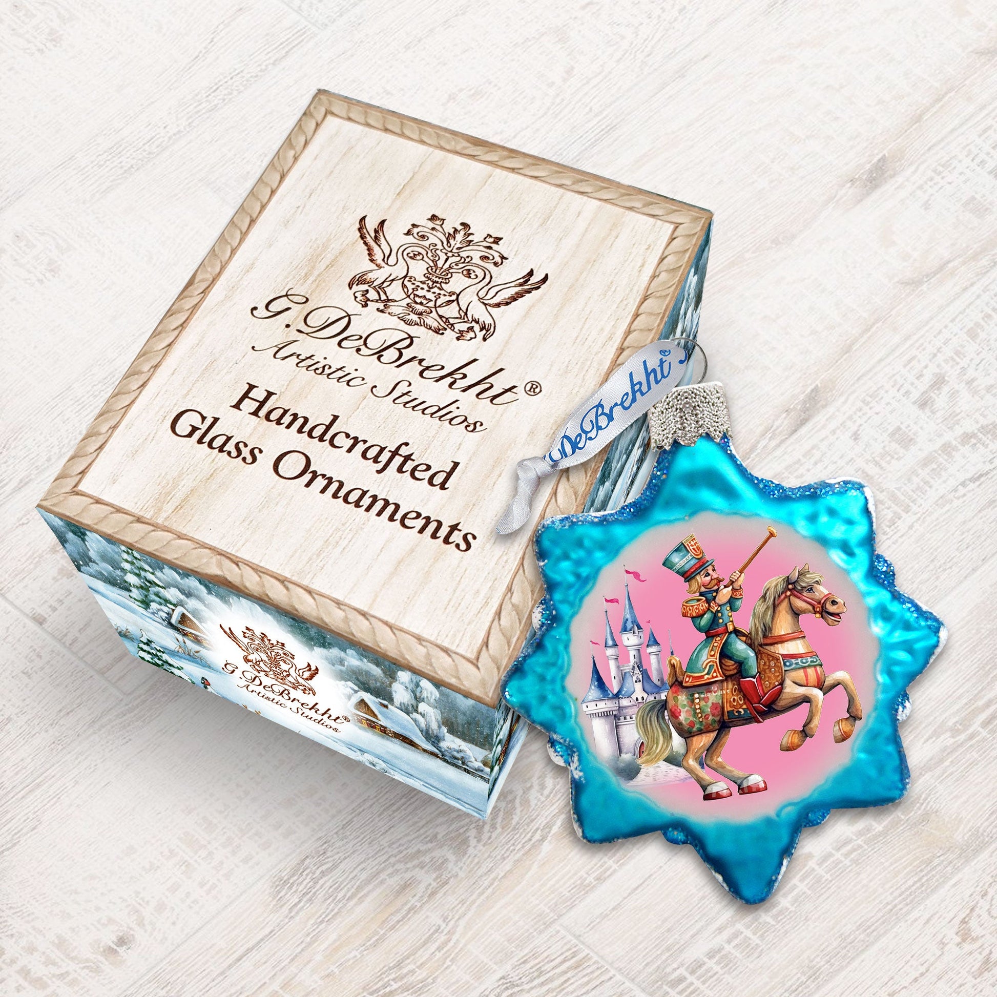 About Collection: The Mercury glass “Tree-gallery” Keepsake Glass Ornaments are artistically hand-crafted with added touches of gold and silver for a subtle glow. This Collection has been inspired by an old world-Eastern European family, who for almost 200 years had been painting beautiful miniature lacquered paper-mâché boxes inlaid with mother of pear. It took years of perfecting this technique to establish this new and innovative form of painting that we now proudly present in our exclusive G. DeBrekht Glass ornaments. As in the old days, they are made from 1.5 mm hand-blown Mercury Glass, silver powdered from the inside and then sandblasted from the outside. The combination of colors and the multi-layer painting techniques create a strong iridescent effect. We take pride in perfecting every piece by adding touches of gold, finishing them with a lovely satin ribbon, and presenting them in a gift box. Approximate size: 3” x 2”. Hand-made in the USA, every piece is unique- and will be passed on to future generations to cherish.