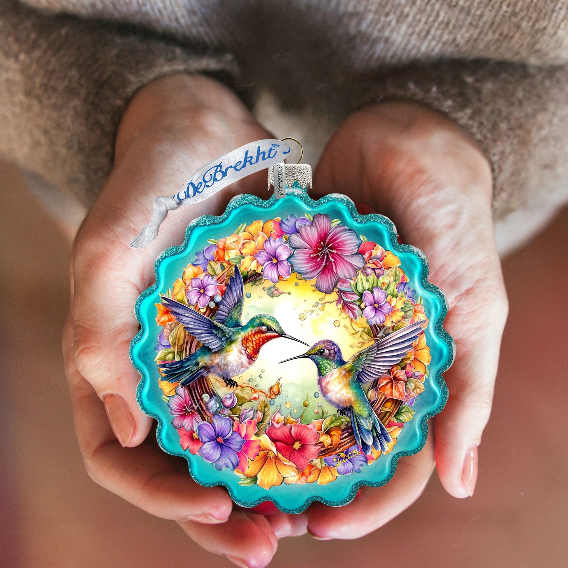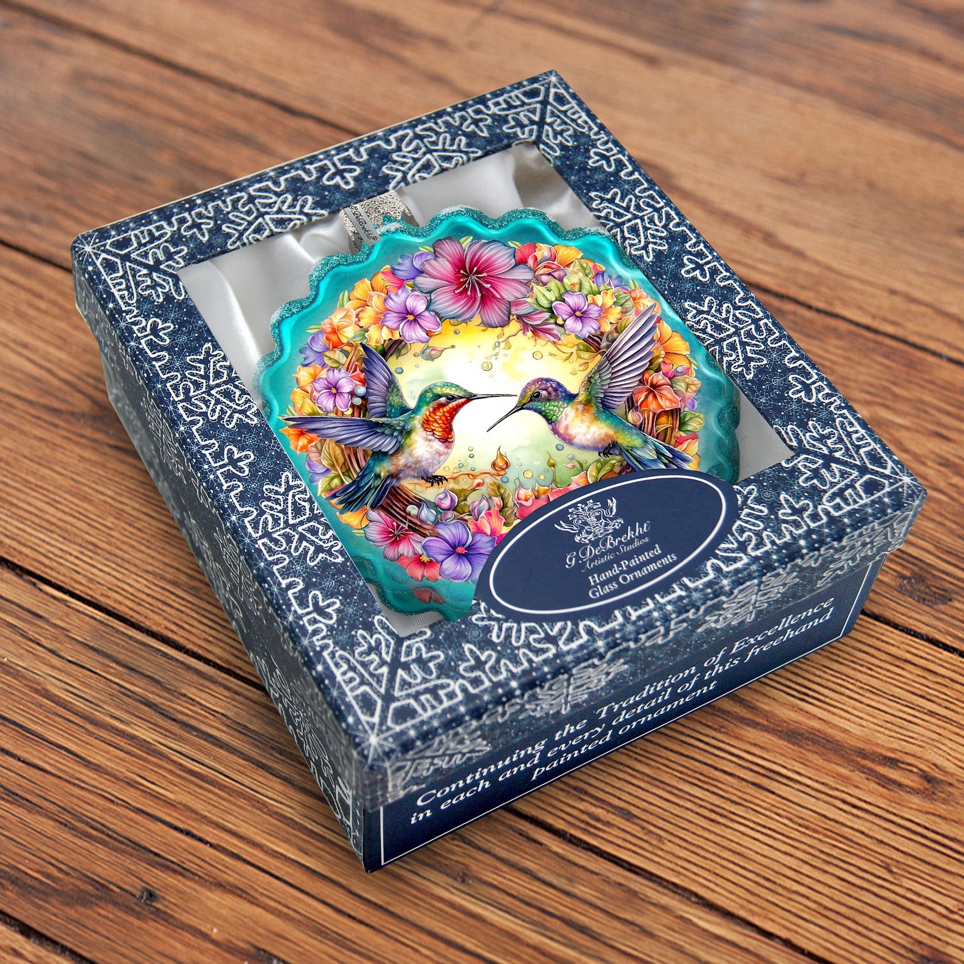 Hummingbirds Wreath Glass Ornament by G. Debrekht - Wildlife Holiday Decor - 759-061