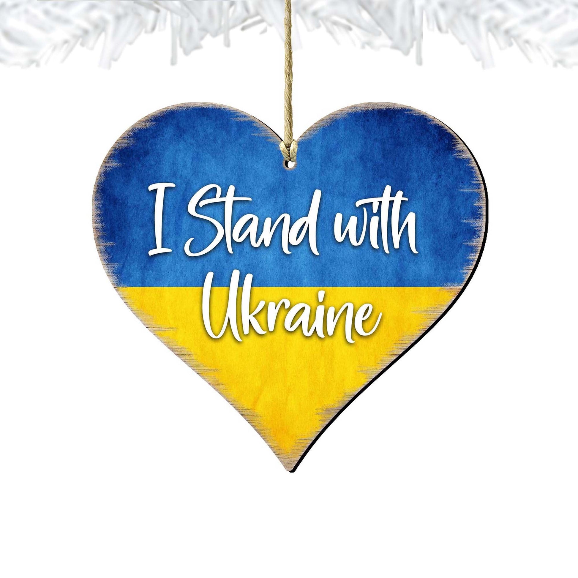 I Stand with Ukraine Wooden Ornaments - International Decor - 8187121