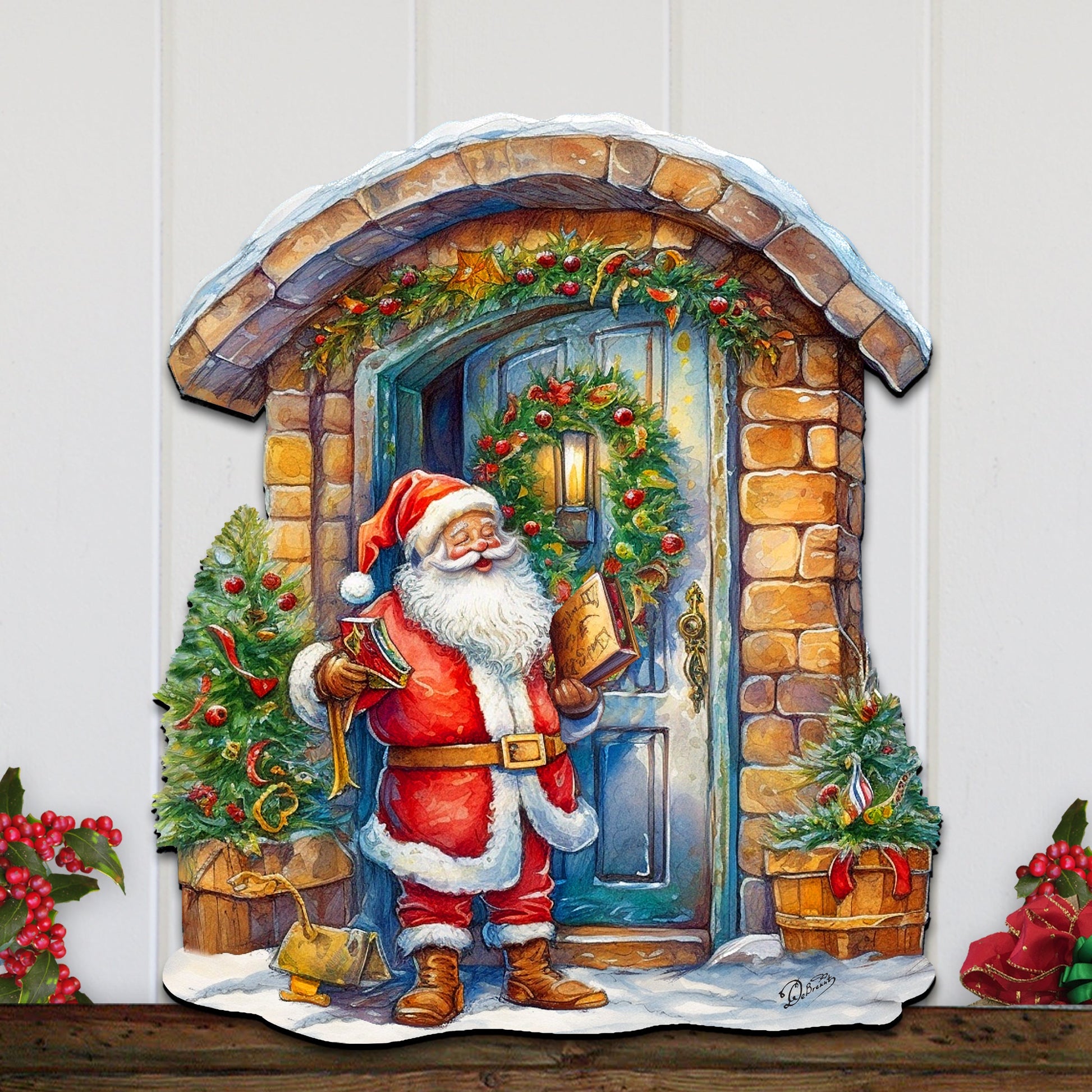 About Collection: The “Holiday Door Hangers” Collection is inspired by the well-renowned G. DeBrekht Artistic Studios’ iconic Masterpiece Collection. Those art pieces could be used as Door hangers, Window Decor, and decorative wall mantelpieces- an incredible all-around Collectible. This Art will make the perfect gift for friends and family on any occasion! Decorating a home is a particular time for all families, so create your holiday gallery for all your friends and family to enjoy by collecting the unique style of G.DeBrekht Artistic Studios. Please check out our collections, including classic Christmas art, Winter Wonderlands, and Nativity Art, all available in approximate sizes: 24 x 18 x 0.3. This product is made from high-quality plywood, making it sturdy and lightweight. UV protective coating makes this product weather-resistant to be used indoors and outdoors. Wall mounting hardware is included and attached to this product. 100% hand-crafted in the USA.