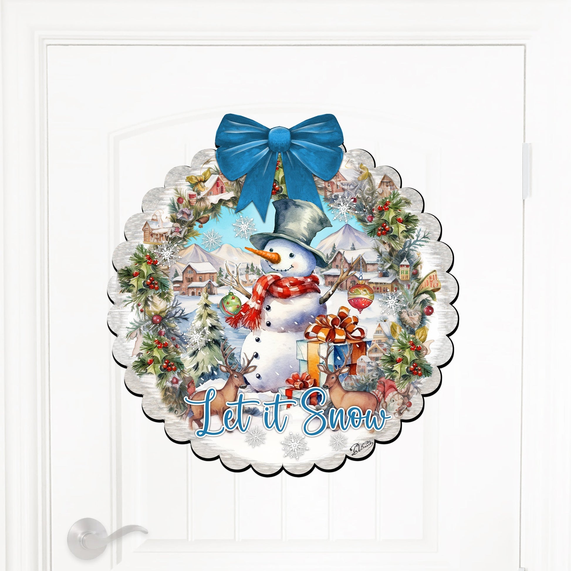 Let It Snow Front Door Welcome Sign, Wooden Front Porch Decor by G. Debrekht Christmas Santa Snowman Decor - 933122H