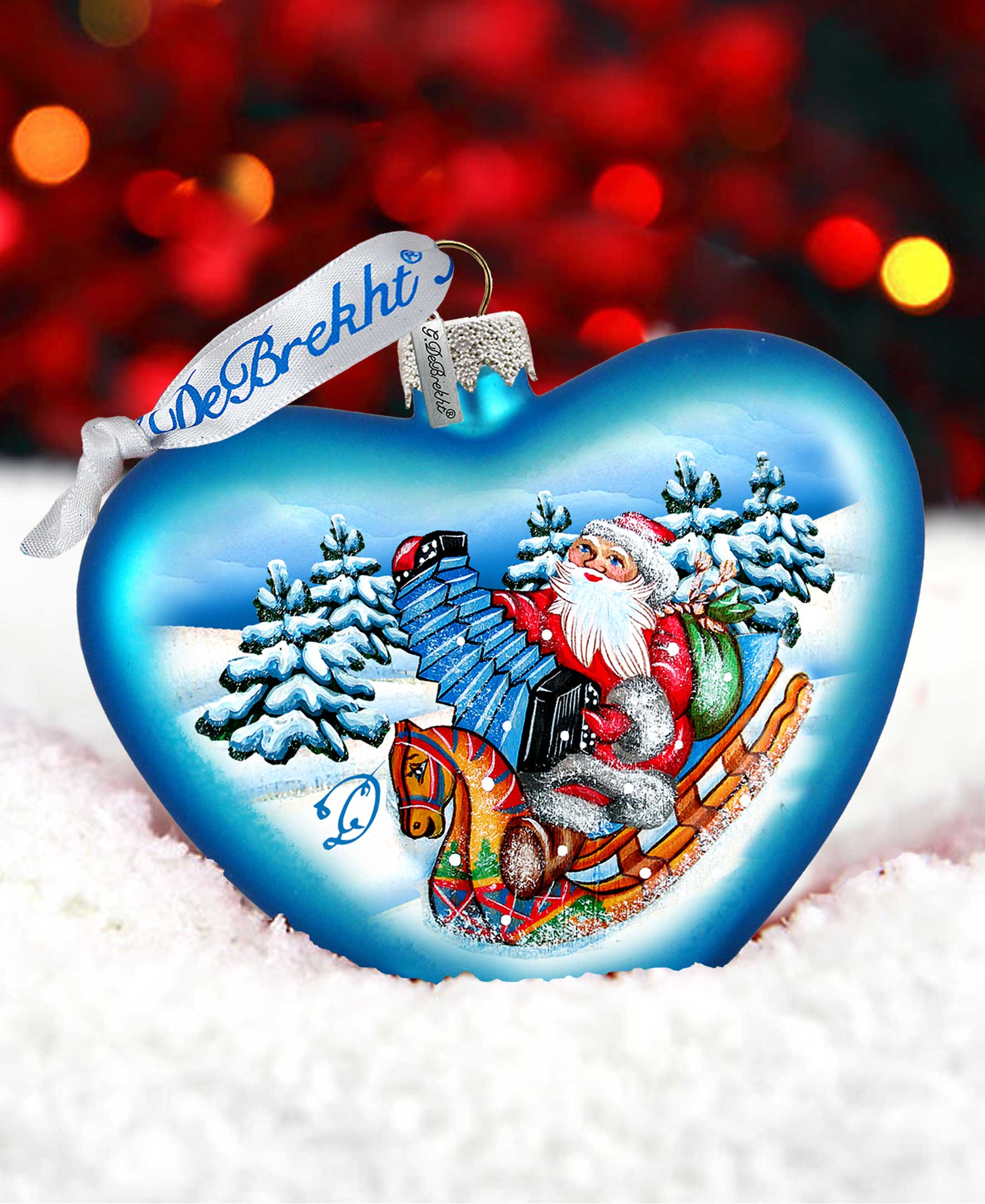 Love Heart Accordion Santa Glass Ornament by G. DeBrekht - Christmas Santa Snowman Decor - 752-023