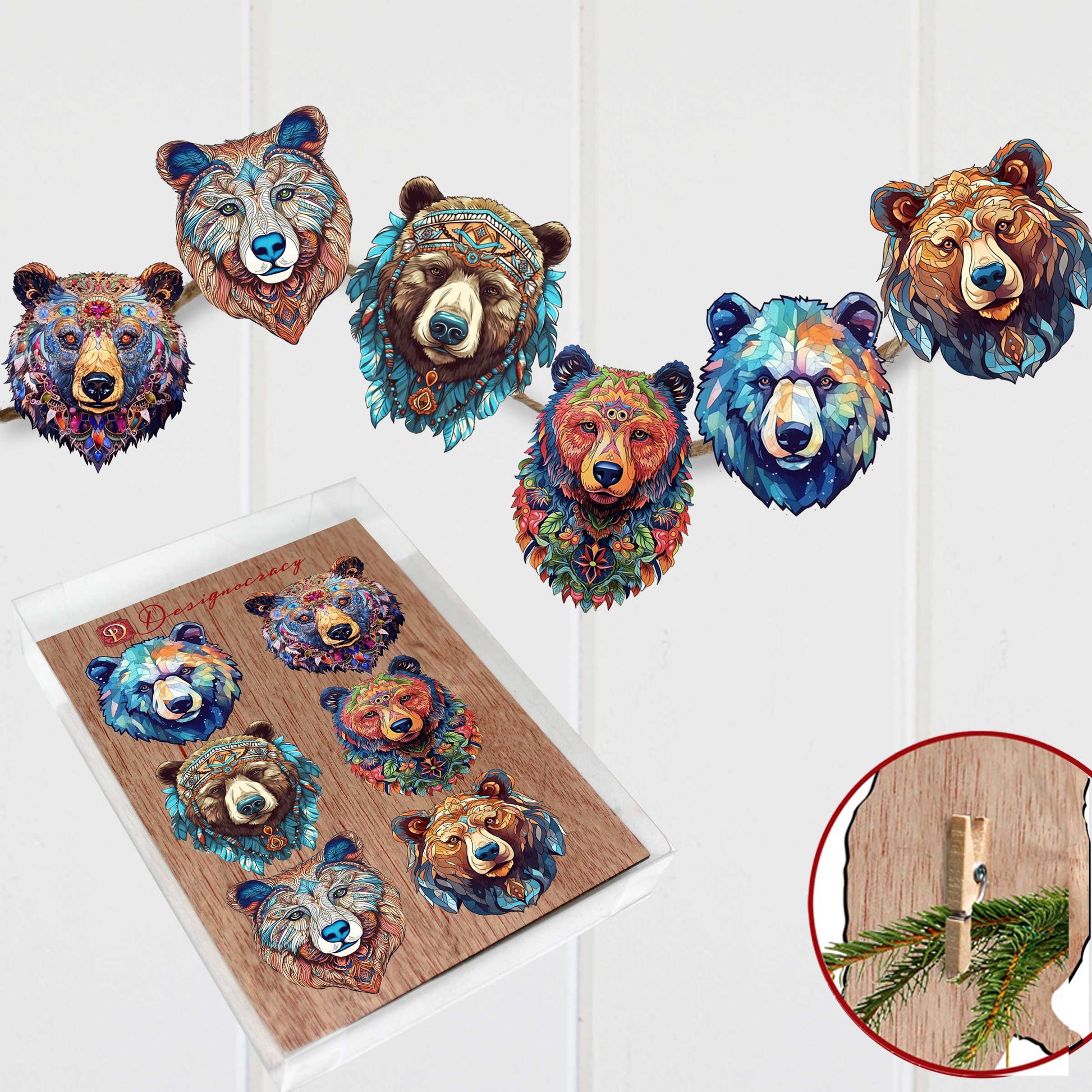 Mystical Bears Decorative Wooden Clip-on Ornaments Set of 6 by G. Debrekht - Wildlife Decor - 8090120C-S6