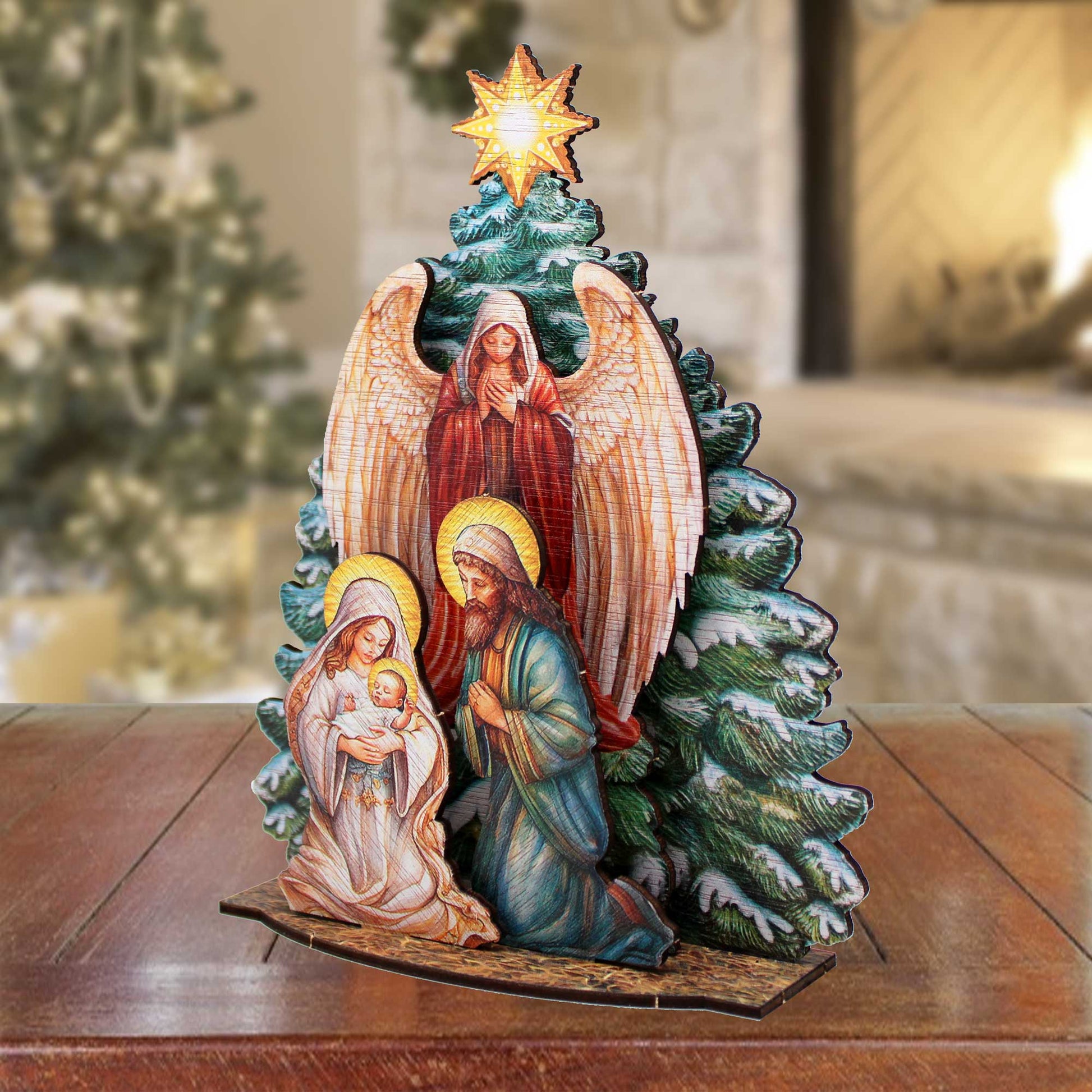 Nativity Scene with Christmas Tree Decorative Village Set by G. Debrekht Nativity Holiday Decor - 852767