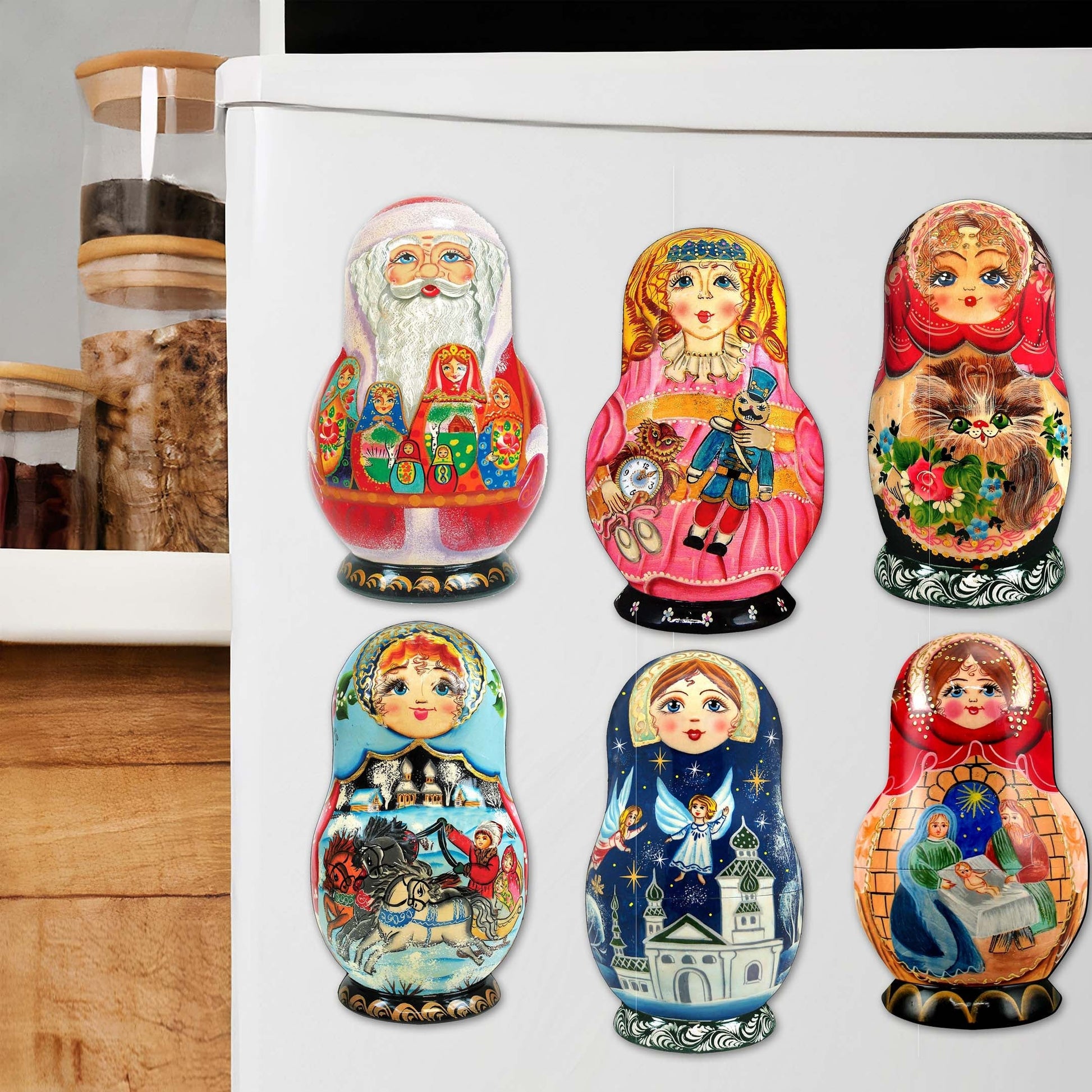Nested Dolls Decorative Wooden Magnets Set of 6 by G. Debrekht - Christmas Decor - 8090130G-S6