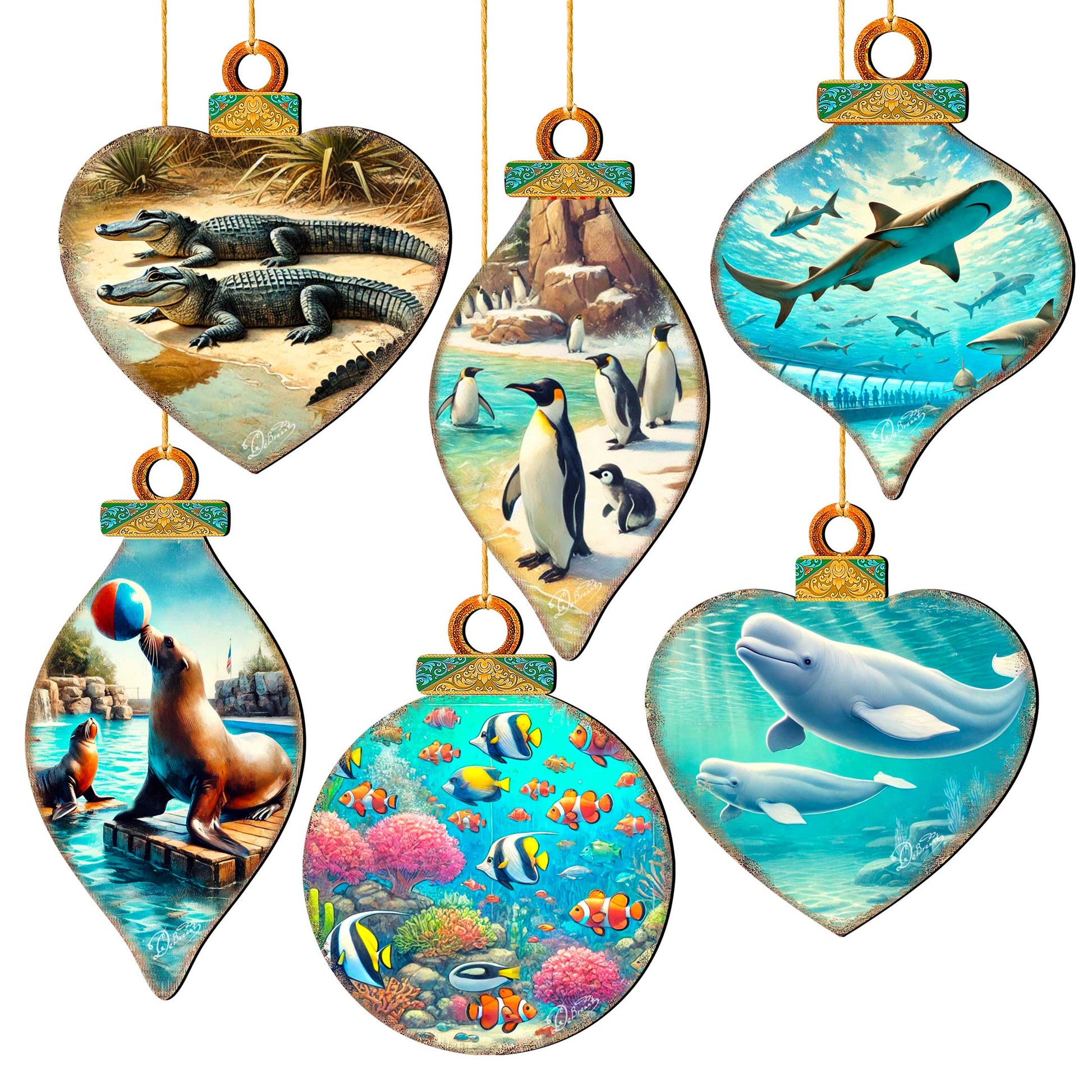 Bring the magic of the ocean to your holiday décor with this stunning set of 12 handcrafted wooden ornaments by G.DeBrekht. Each ornament features a beautifully detailed scene of marine life—from playful dolphins and sea lions to gentle manatees, elegant stingrays, vibrant coral reefs, and more. Perfect for ocean lovers, coastal homes, or anyone who treasures the beauty of aquatic wildlife.