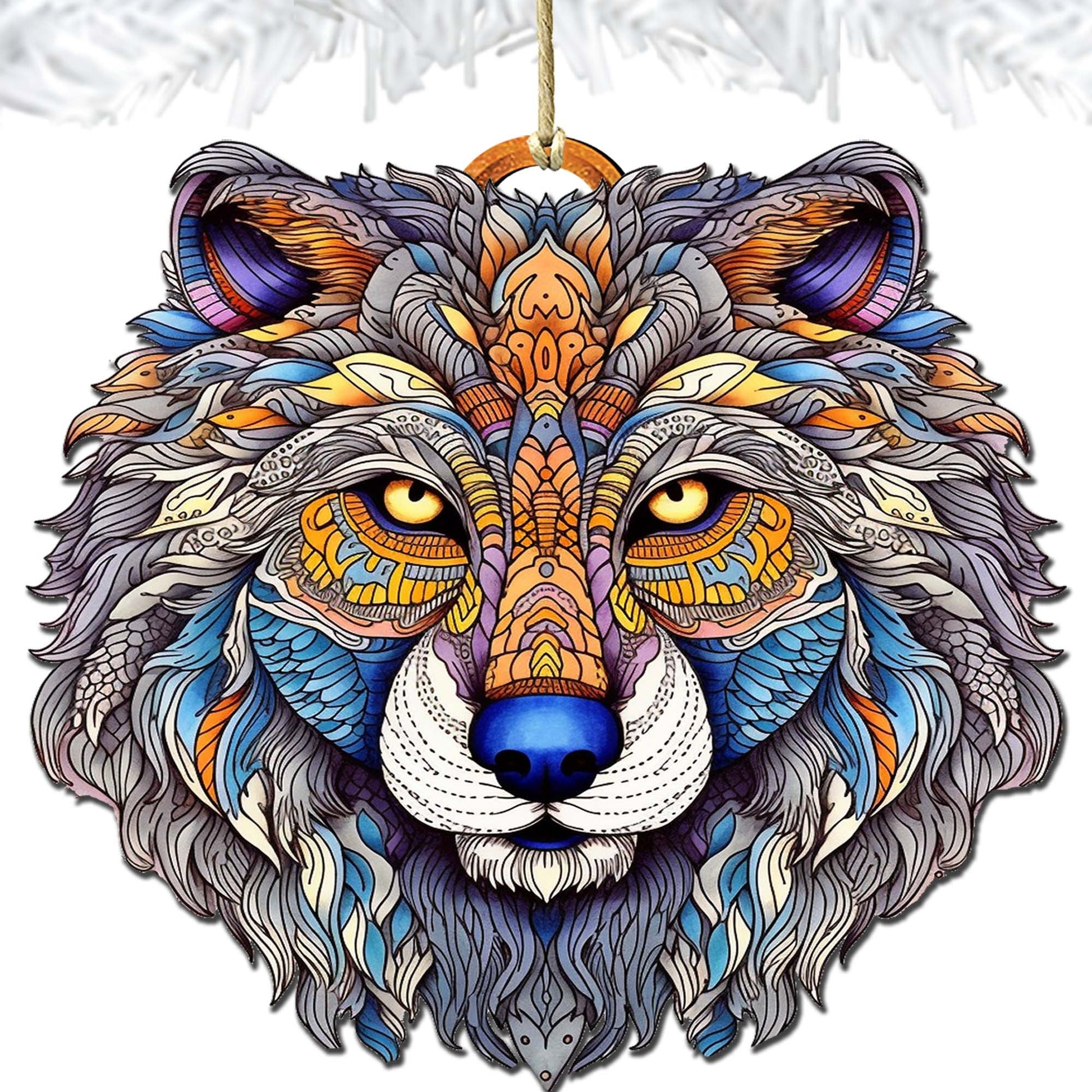 Ornamental Wolf Face Wooden Ornaments by G.Debrekht - Wildlife Holiday Decor - 8710125-2
