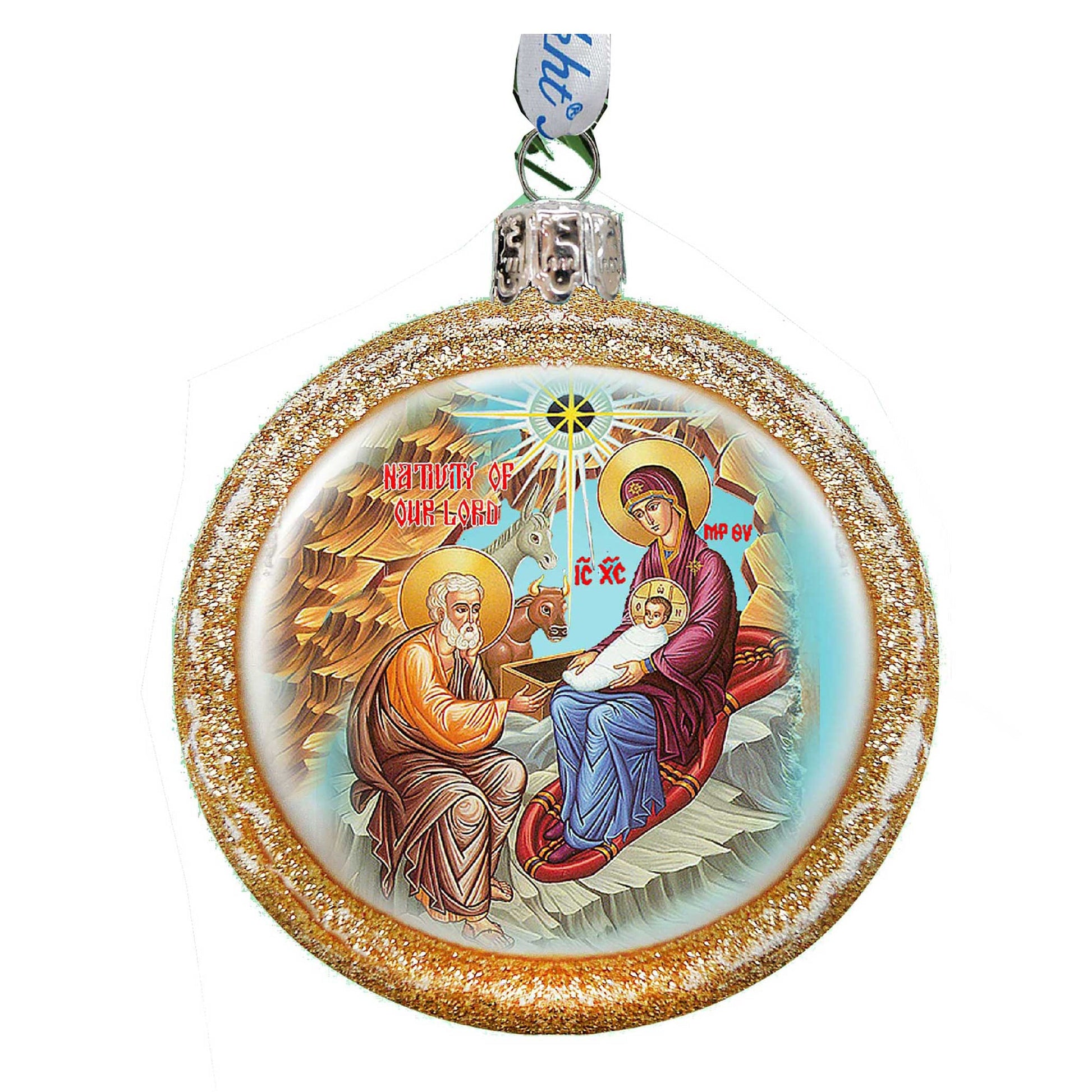 Orthodox Nativity Glass Ornament by G. DeBrekht - Nativity Holiday Decor - 73752G