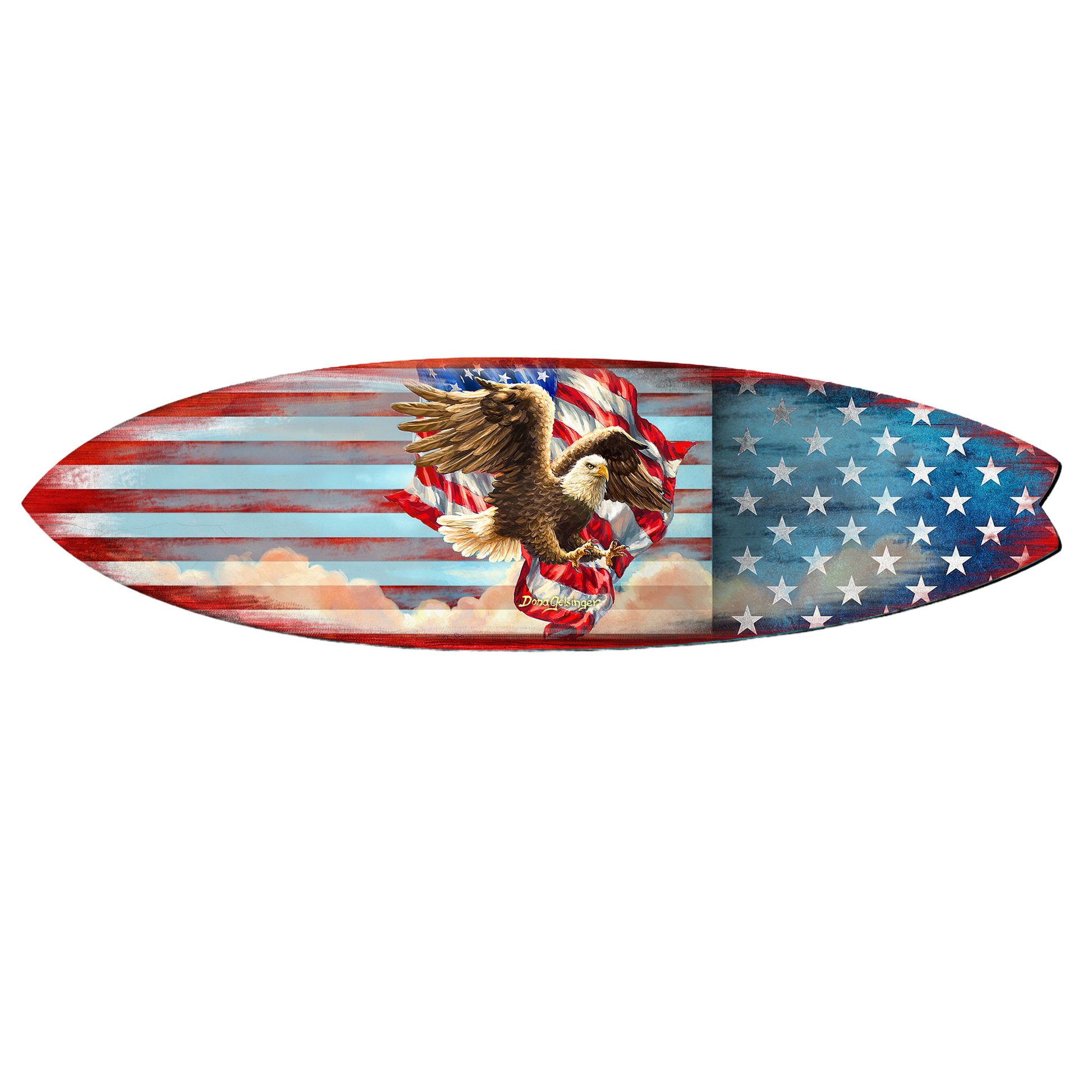 Patriotic American Flag Surfboard Coastal Door Art by D. Gelsinger - American Christmas Decor - 8490108HS