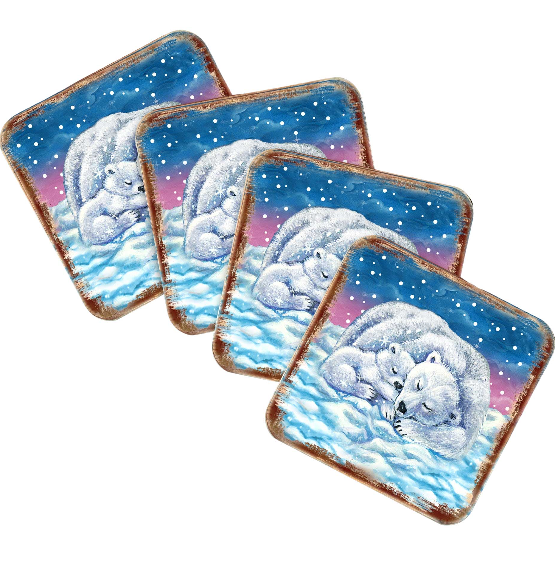 Polar Bears Wooden Cork Coasters Gift Set of 4 by Nature Wonders - Nature Wildlife Decor - 95381C-S4